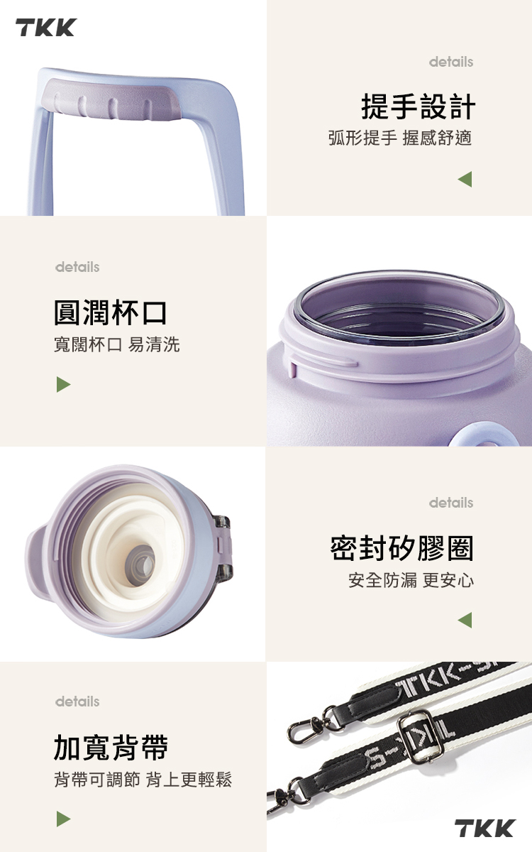 ●直飲+吸管一杯雙飲●手提、肩背兩用,持攜便利●戶外露營登山運動,大容量專用●Tritan食品級材質、不含雙酚A●PP底座耐衝擊防撞防滑