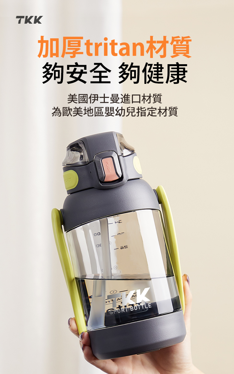 安全耐用的材質:水壺由堅固的 美國進口Tritan 材質製成,特性清澈透明、優異的抗衝擊能力、不含雙酚A,可確保您的飲用水保持安全和健康。