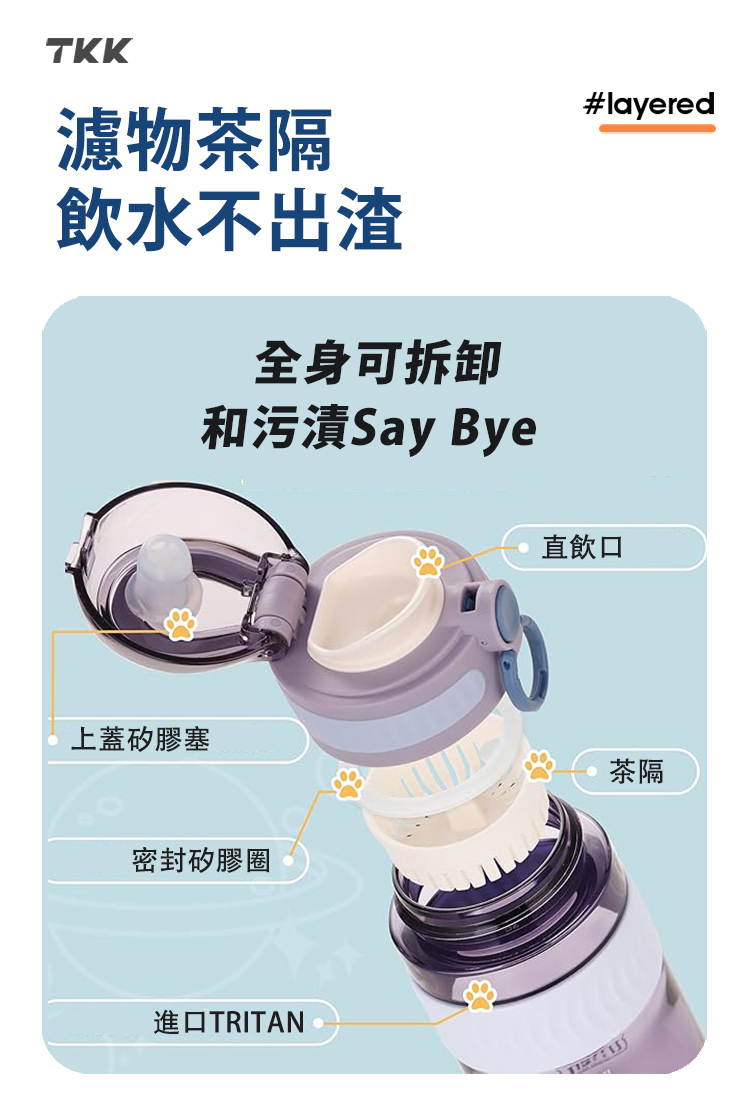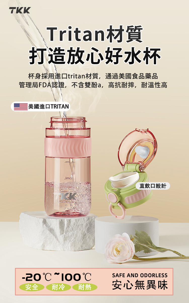 安全耐用的材質:水壺由堅固的 美國進口Tritan 材質製成,特性清澈透明、優異的抗衝擊能力、不含雙酚A,可確保您的飲用水保持安全和健康。