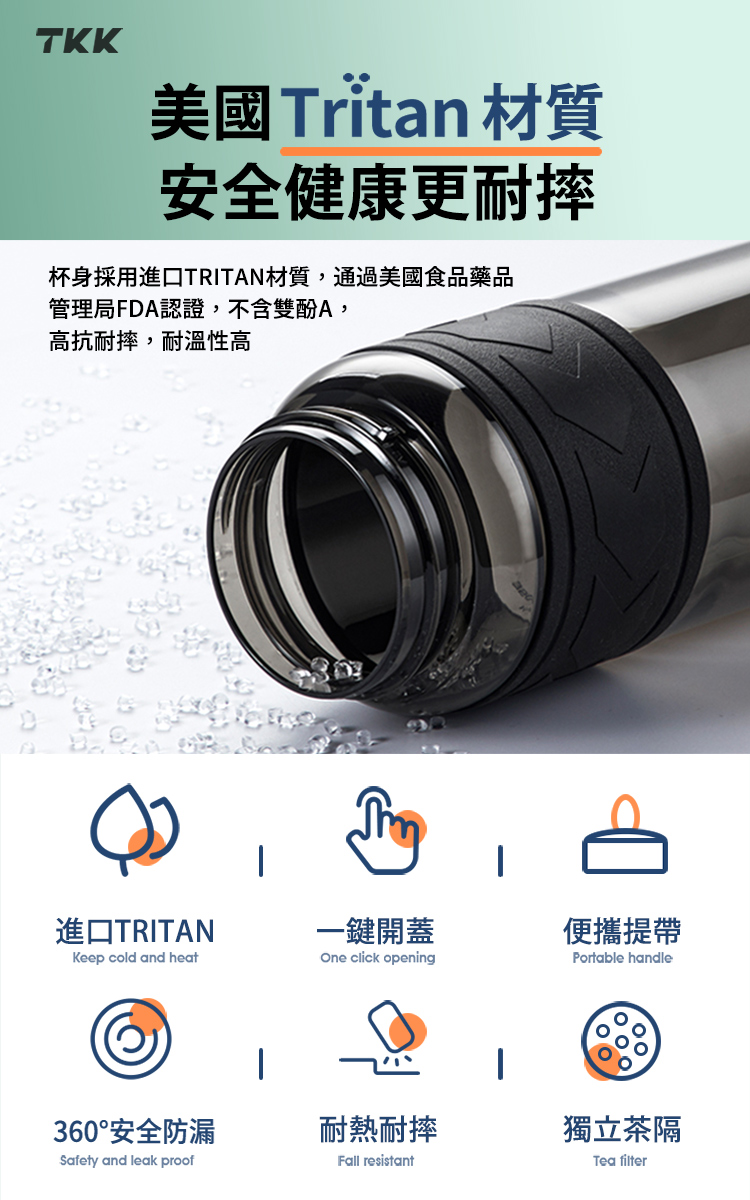 安全耐用的材質:水壺由堅固的 美國進口Tritan 材質製成,特性清澈透明、優異的抗衝擊能力、不含雙酚A,可確保您的飲用水保持安全和健康。