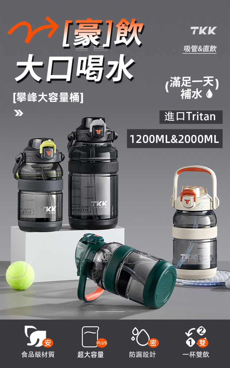 ●直飲+吸管一杯雙飲●手提、肩背兩用,持攜便利●戶外露營登山運動,大容量專用●Tritan食品級材質、不含雙酚A●PP底座耐衝擊防撞防滑