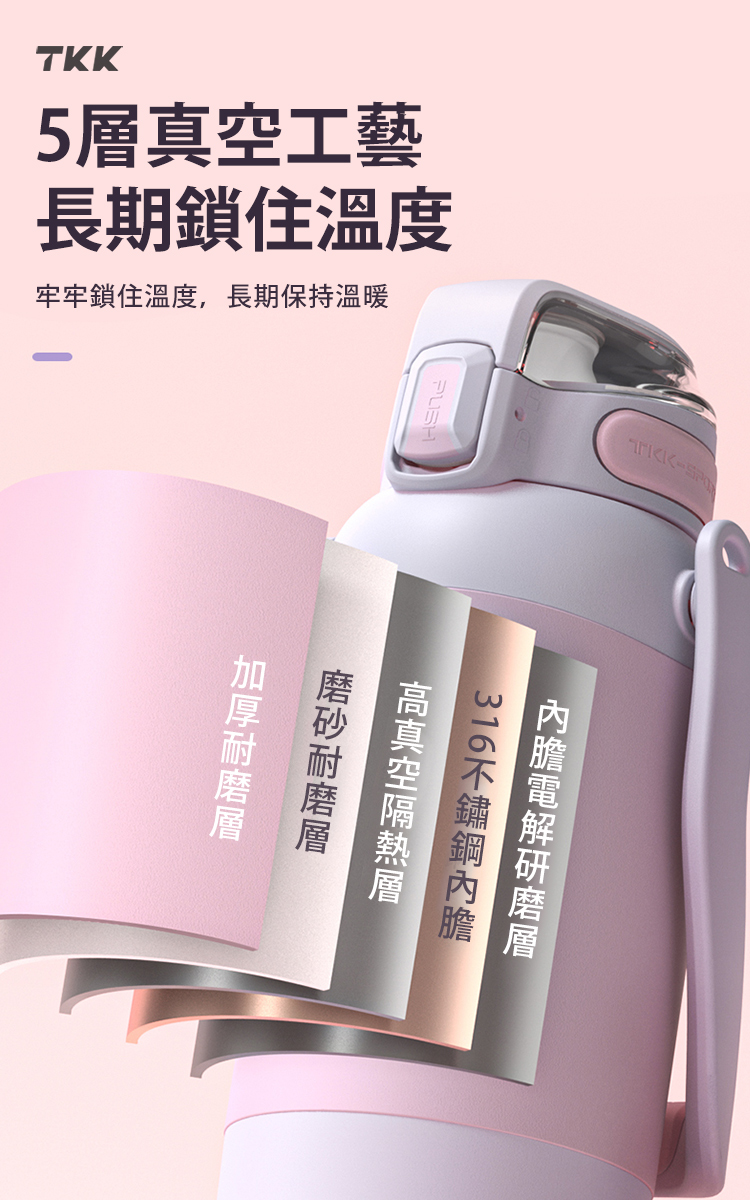 優質材料:由優質食品級316不鏽鋼內膽製成,耐腐蝕性強,安全健康。雙層真空隔熱設計,可讓飲料長效保溫保冷,長期鎖住溫度。