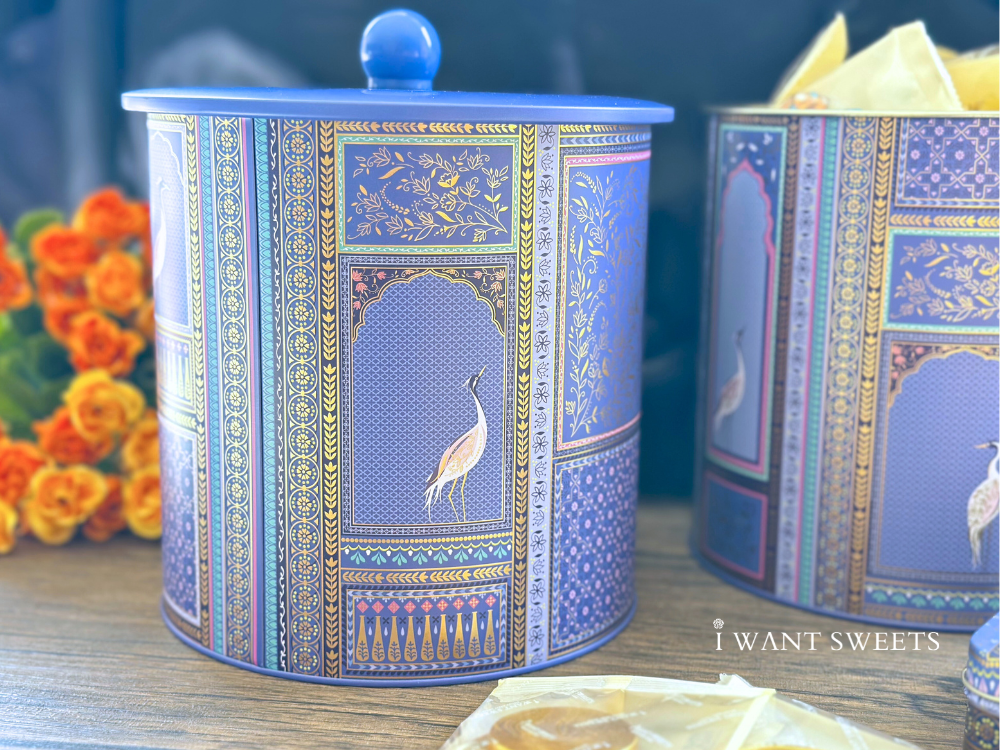 名 稱:Sara Miller 印度鶴糖果圓筒 Sara Miller India Sweets Barrel Tin