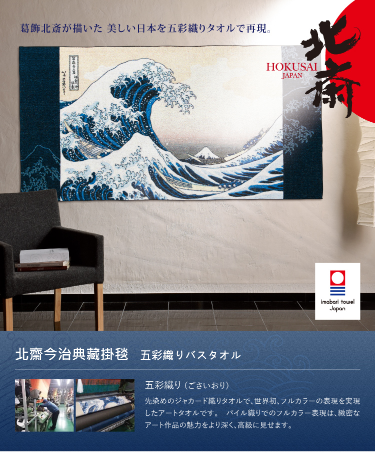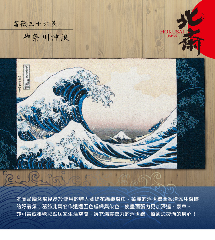 葛飾北齋名作透過五色編織與染色,使畫面張力更加深邃、豪華亦可當成掛毯妝點居家生活空間,讓充滿震撼力的浮世繪,療癒您疲憊的身心!
