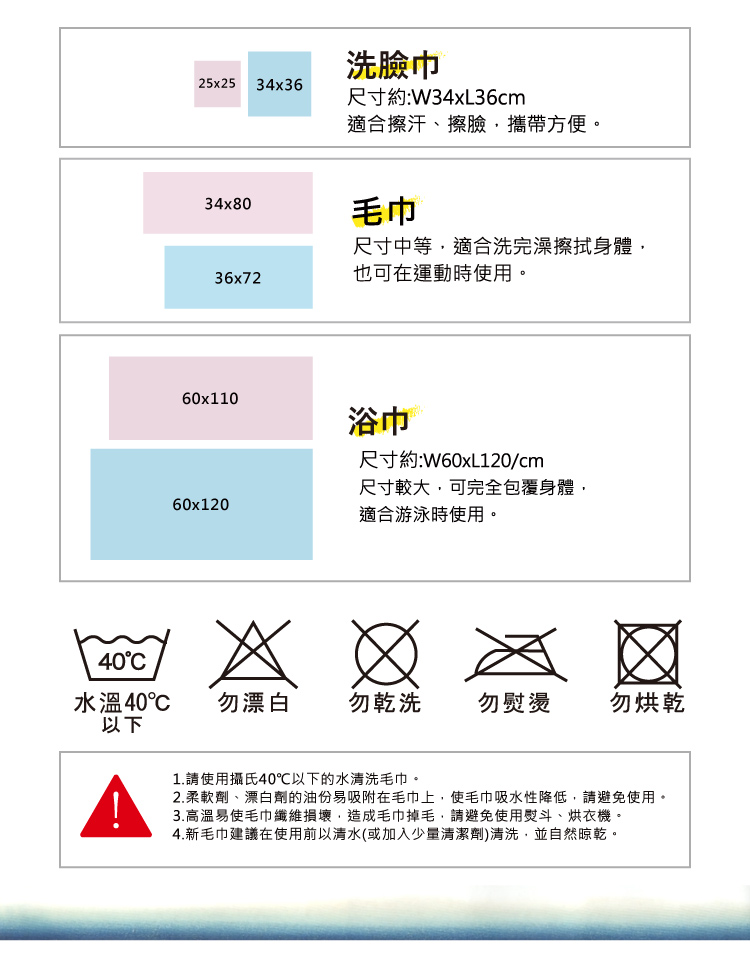 7.毛巾因屬個人衛生用品,拆封即視同購買,拆封商品前請務必三思,以免影響自身權益。