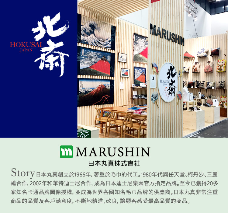 以創造新的日本文化為理念取自浮世繪大師葛飾北齋名作充滿藝術美感鮮艷的色彩和構圖榮獲日本今治認證