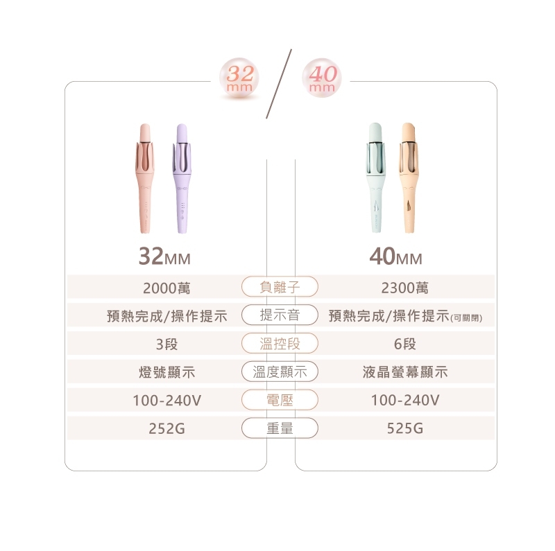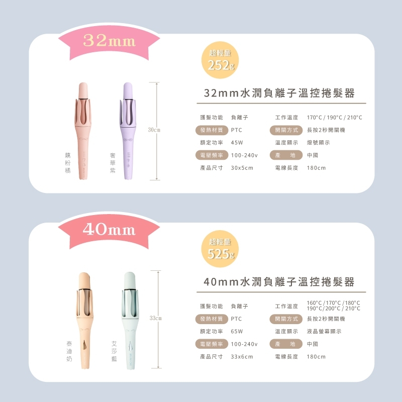 ❤️40mm水潤負離子溫控捲髮器❤️