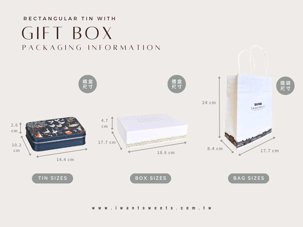 品牌白金長方盒:H4.7 x L18.6 x W13.2 公分
