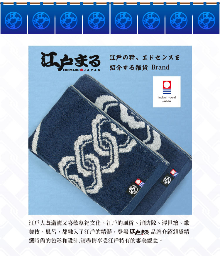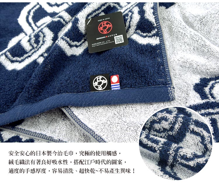 【商品內容】日本丸真 江戶日式 今治毛巾-藏青