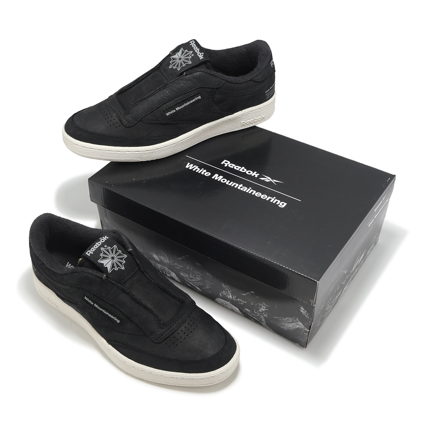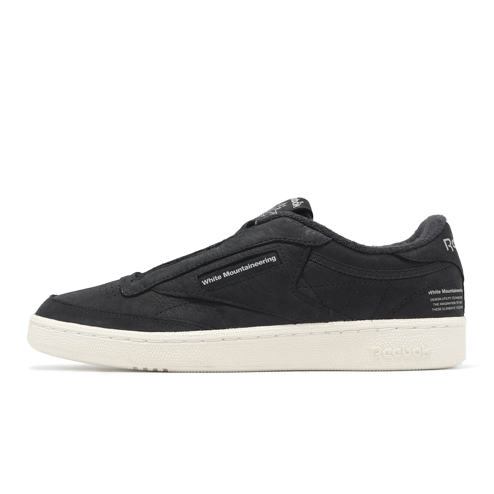品牌: REEBOK型號: 100218233品名: Club C 85 WM版型: 版型正常* 與日本戶外品牌-WHITE MOUNTAINEERING 聯手打造,以經典 Club C 為基礎,去除鞋帶設計,鞋側印有品牌字樣。
