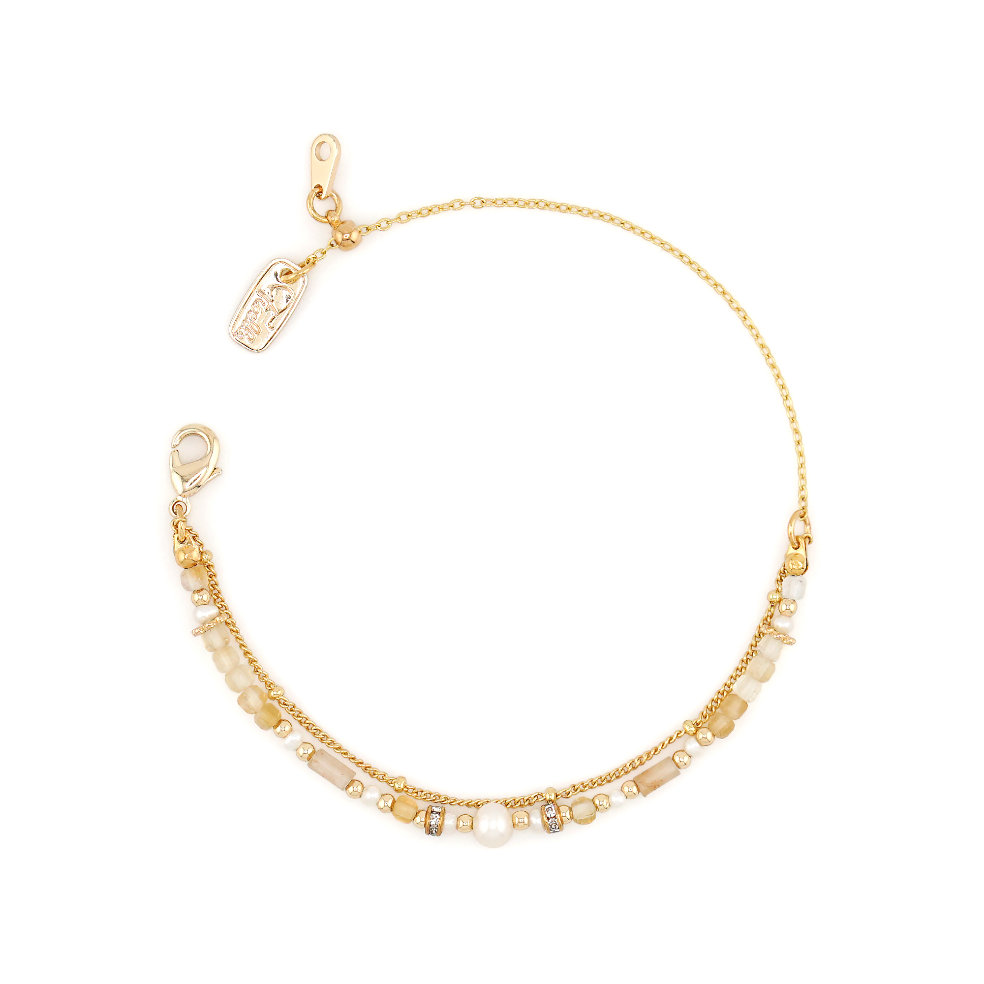– 商品材質 Product Materials –黃玉、黃蛋白石、淡水珍珠、鋯石、黃銅鍍18K金– 寶石寓意 Gemstone Fortunes –珍珠 Pearl:相傳為美人魚的眼淚,可守護愛情美滿。黄玉 Nephrite Jade:又稱為軟玉,其蜜糖黃的色澤可吸引好財運,且帶來愉悅的能量。