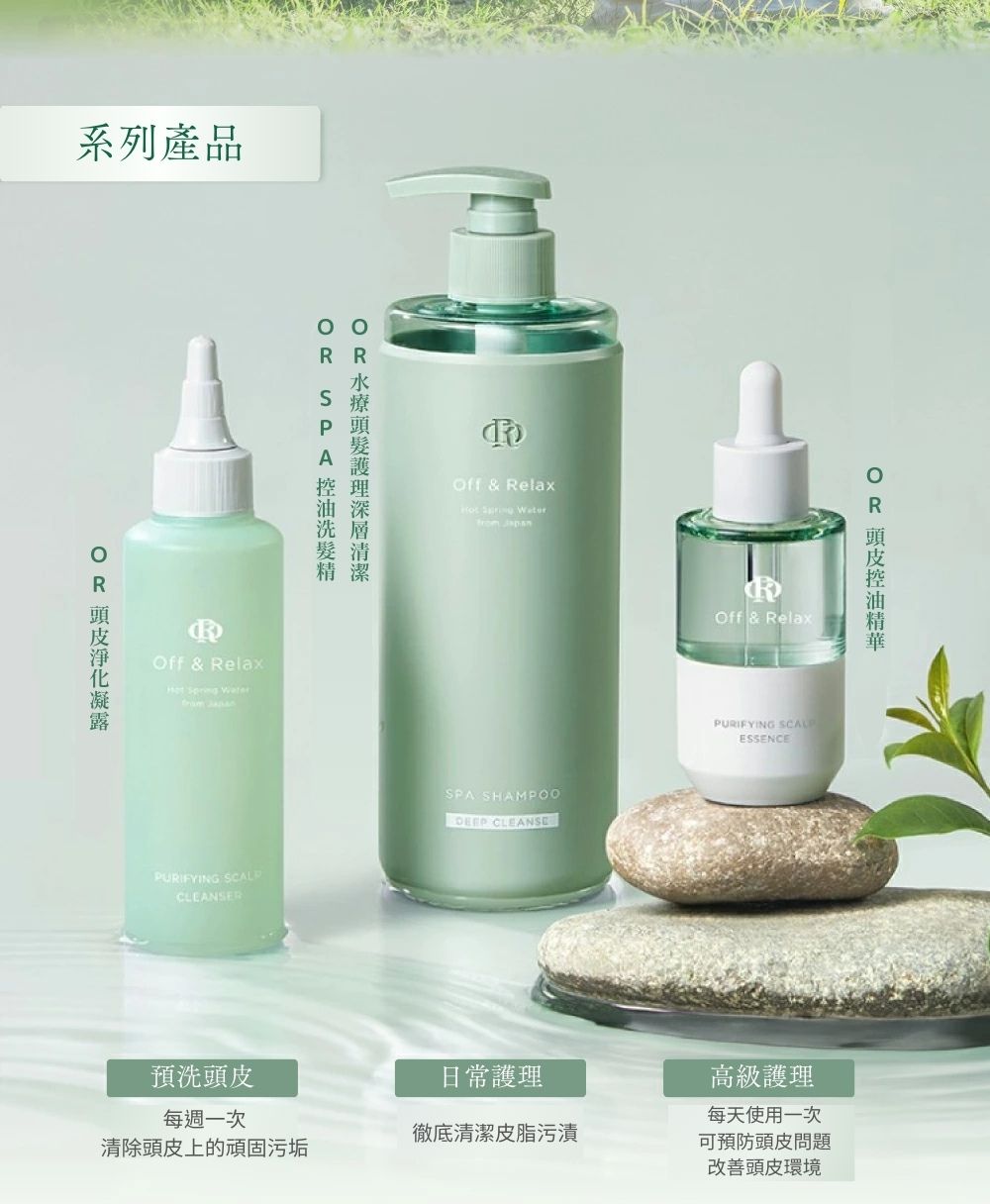 (搭配Off&Relax控油洗髮精、頭皮淨化凝露,讓頭皮滋養與清爽持久維持,達到最佳控油效果,養出健康無油的清新頭皮)