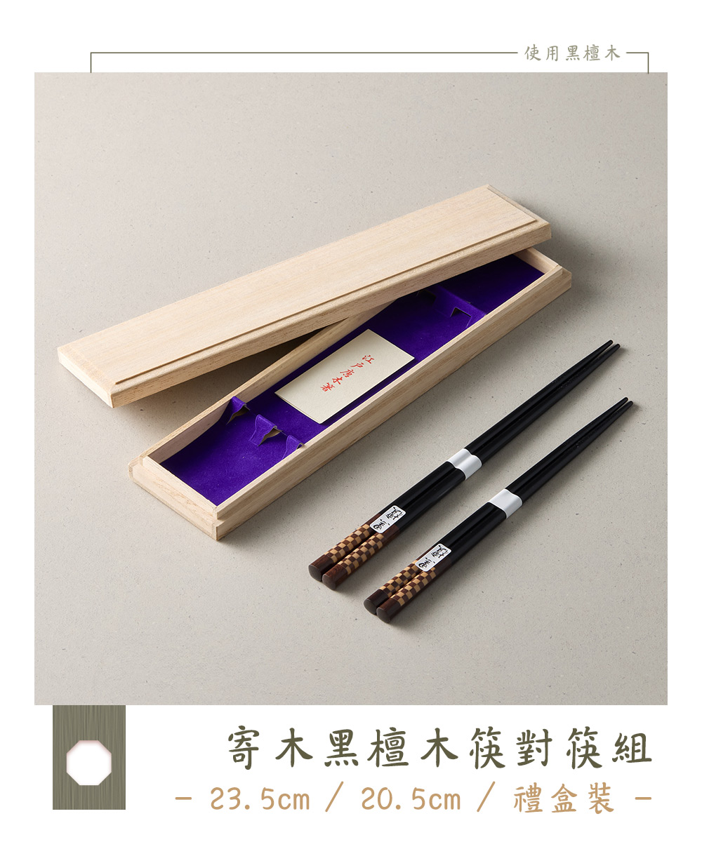 ■ 主商品:木筷 x 2雙、禮盒 x 1■ 材質:木筷 - 黑檀木、禮盒 - 桐木■ 尺寸:木筷 - 20.5/23.5 cm、禮盒 - 6.5 x 26.8 x 2 cm■ 重量:木筷 - 18g/24 g、禮盒 - 50 g■ 產地:日本製造 • 原裝進口■ FDA審核證號:北字第 IFB13HK0899903 號■ 本公司已投保富邦產品責任險新台幣伍佰萬元整