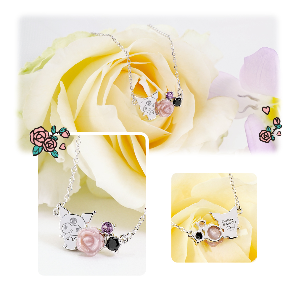 STORY故事銀飾-Kuromi & MyMelody繁花系列-酷洛米珠貝花純銀項鍊