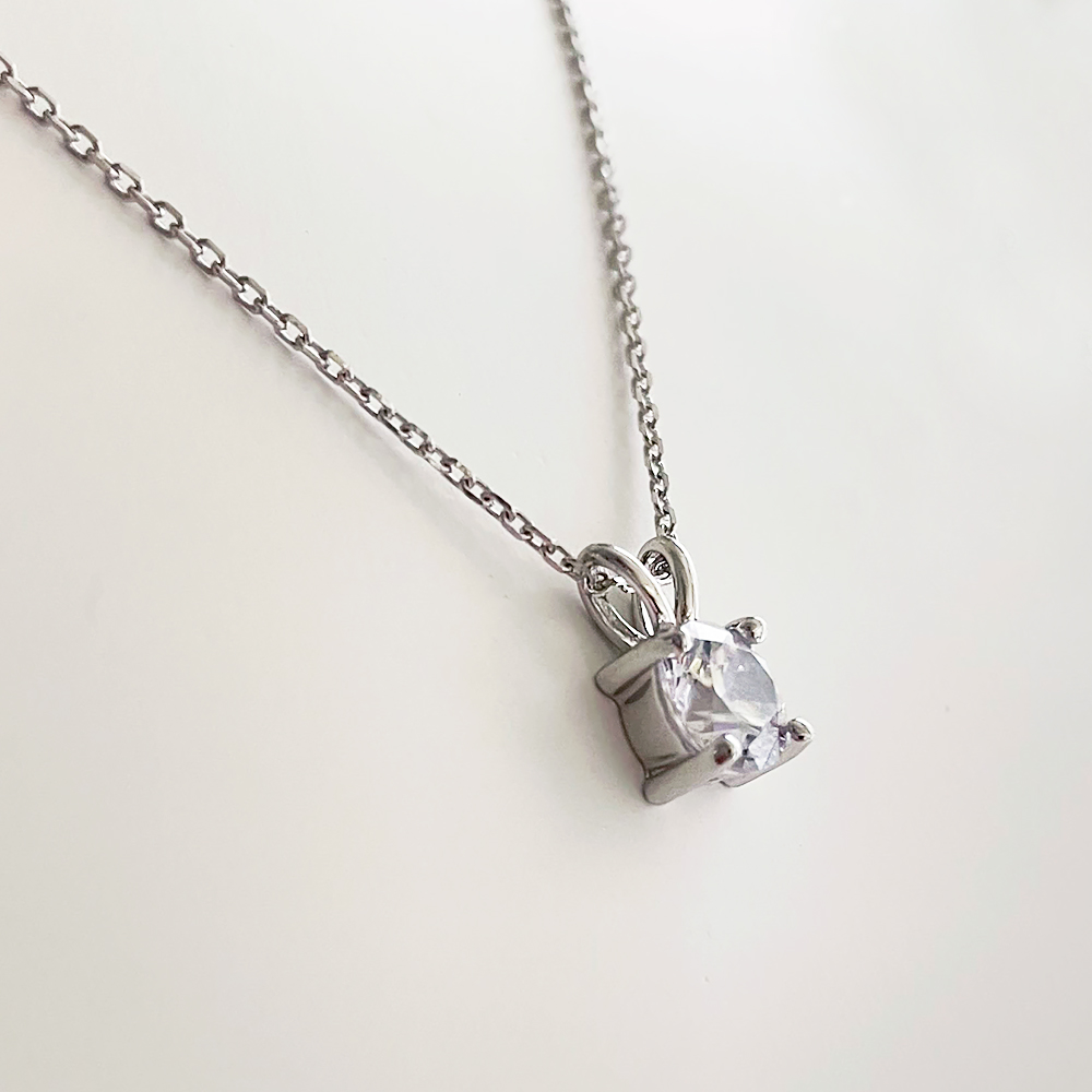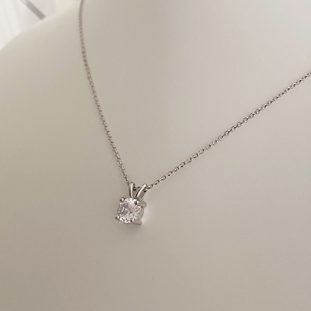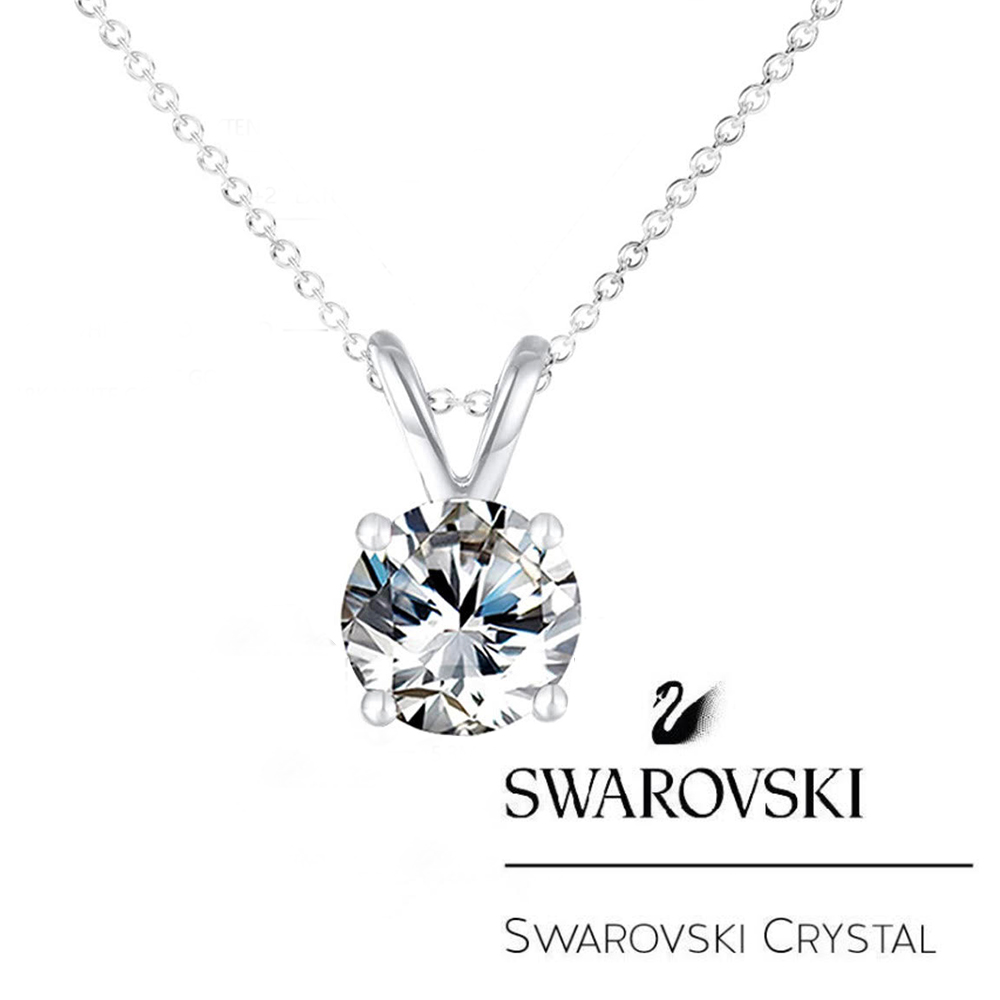 經典簡約單鑽美練 採用純銀CZ單鑽女項鍊四爪鑲嵌約6mm施華洛世奇SWAROVSKI水晶鋯石耀眼迷人精緻、簡約低調中帶有奢華貴氣的氛圍