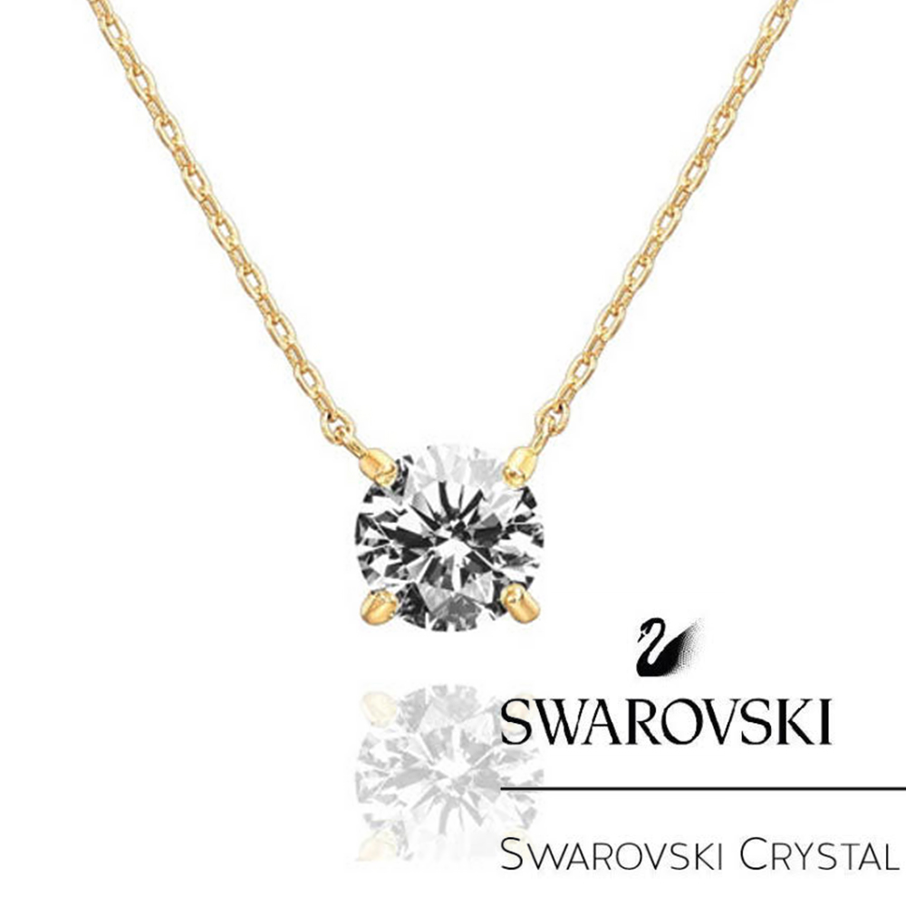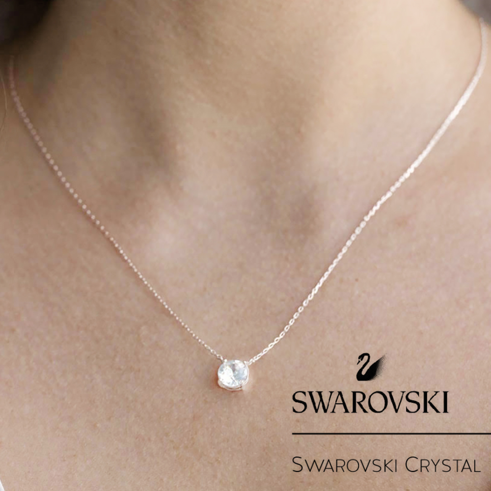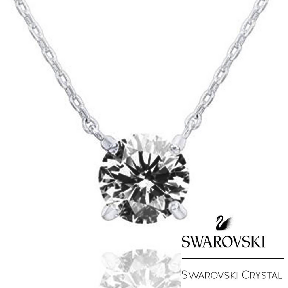 經典簡約單鑽美練 採用純銀CZ單鑽女項鍊四爪鑲嵌約6mm施華洛世奇SWAROVSKI水晶鋯石耀眼迷人精緻、簡約低調中帶有奢華貴氣的氛圍