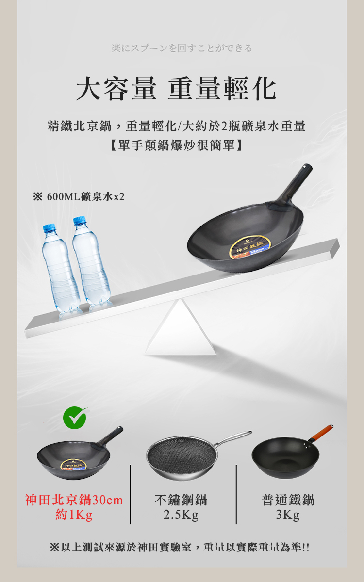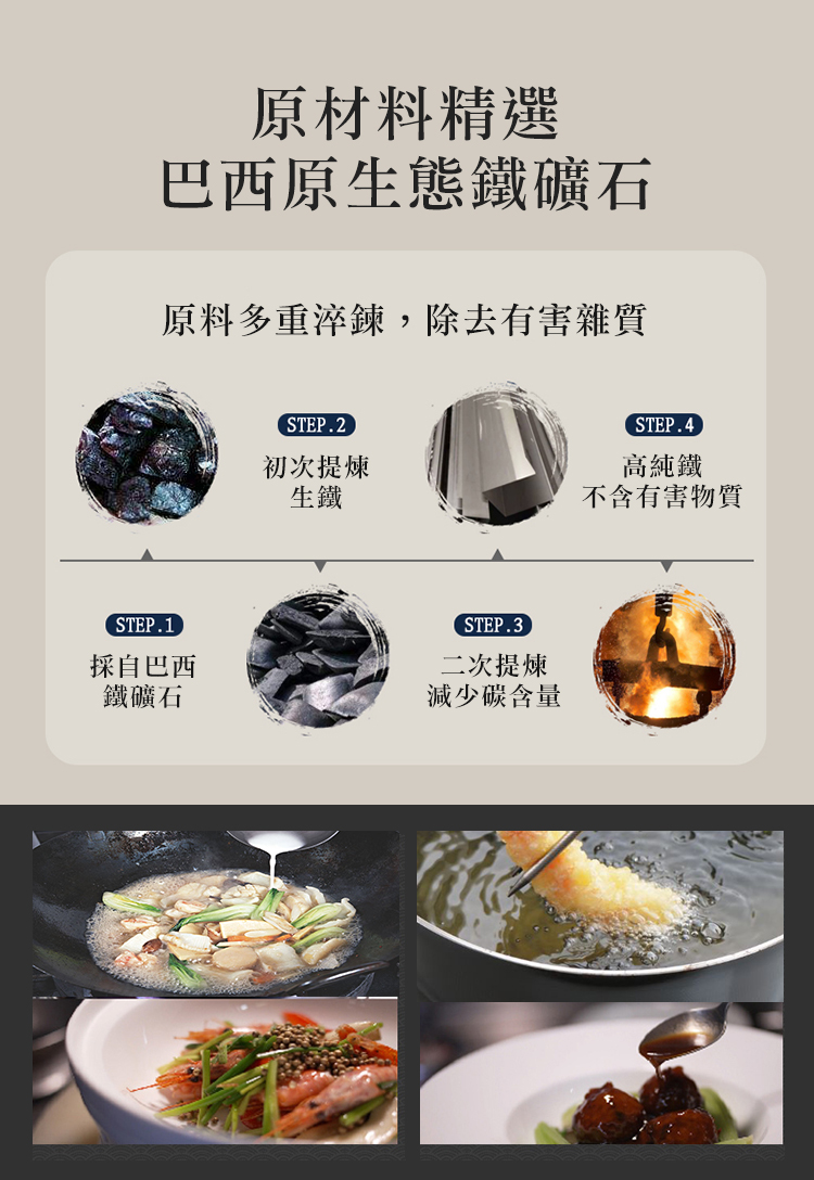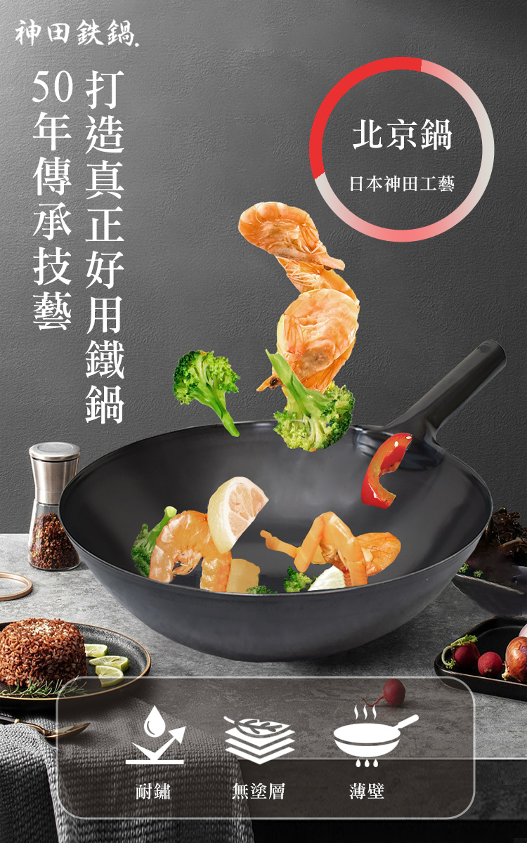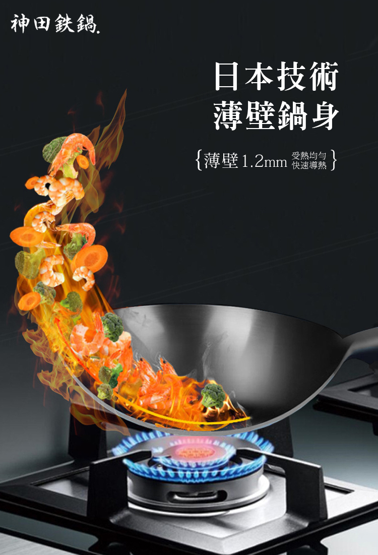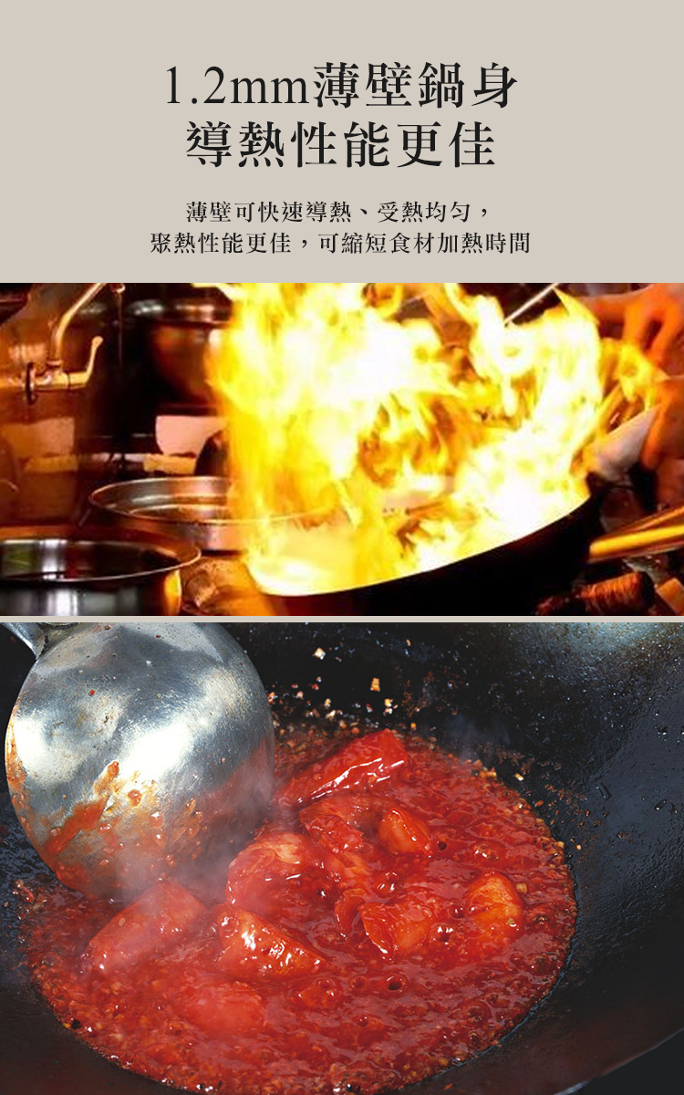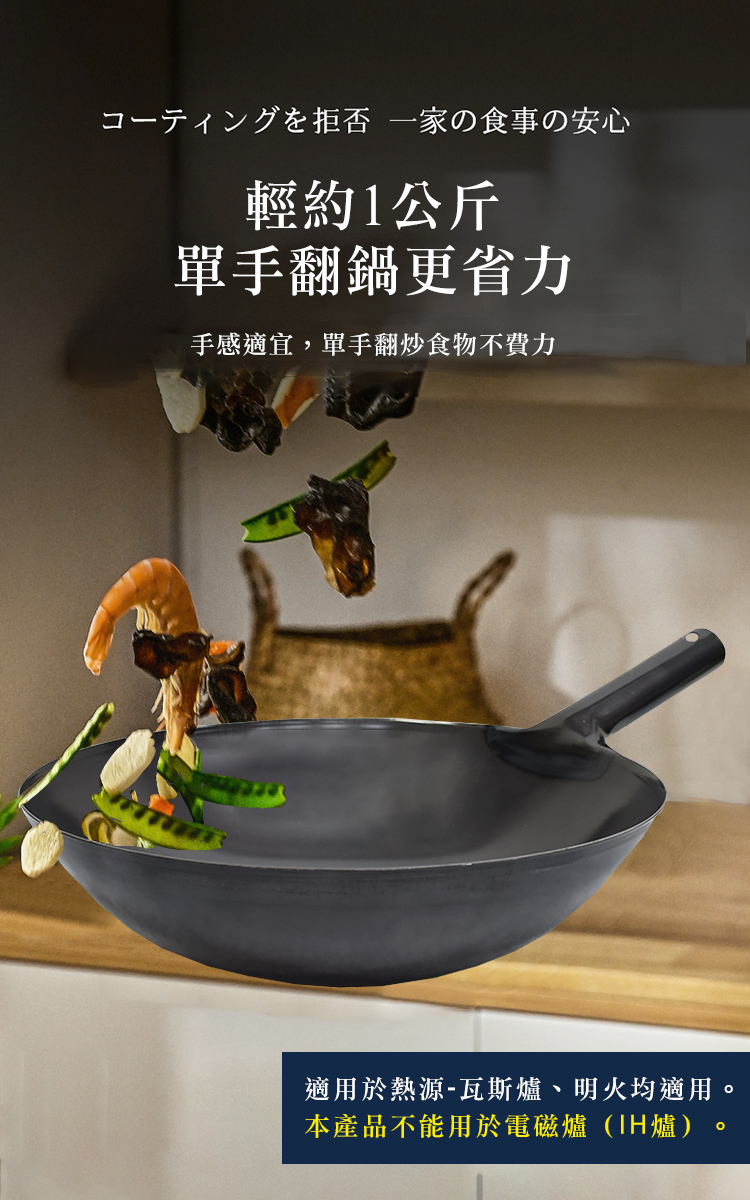 ●中華料理鐵鍋●實打實高純鐵●無塗層加工●薄壁鍋身●導熱快速