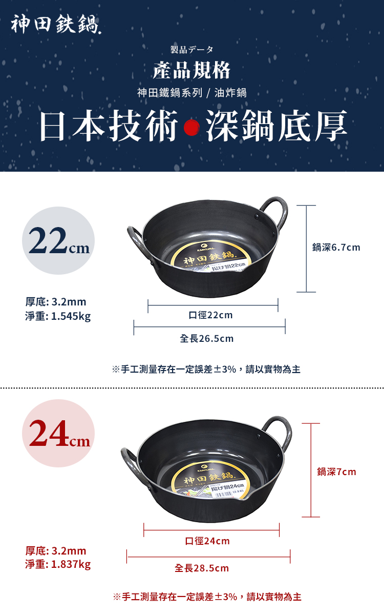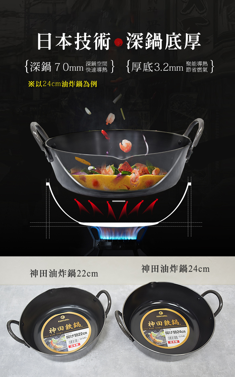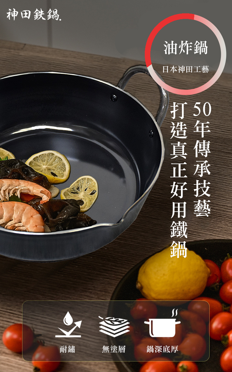 ●油炸鍋專用●實打實高純鐵●無塗層加工●3.2mm極厚實鍋身