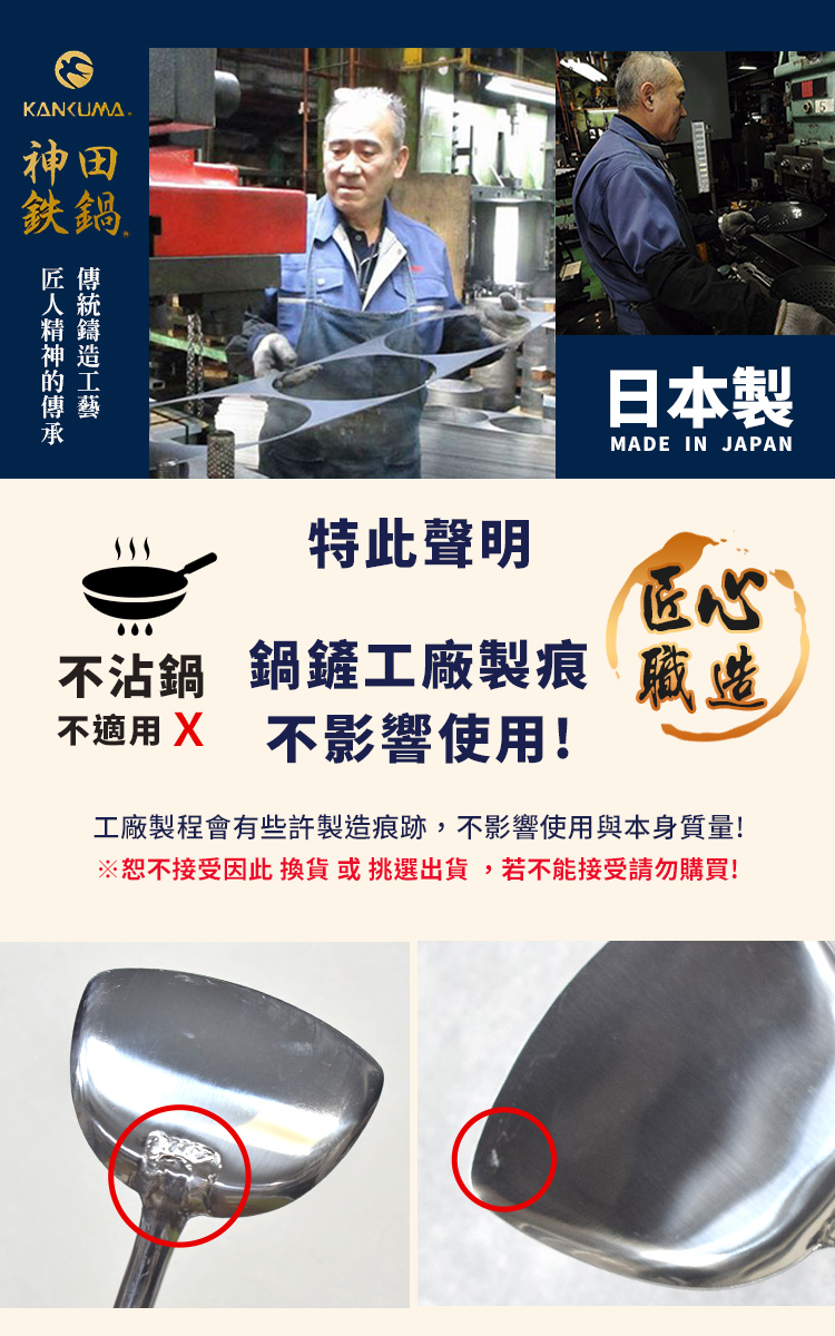 ※此商品不提供測試,不開放體驗。若不能接受請勿購買。※提醒你鑑賞期非適用期,只能看不能用,不能下水、下油、開火烹煮、狀態不可逆,無法退貨。※使用注意:不鏽鋼鍋鏟系列為鐵鍋、鑄鐵鍋、不鏽鋼鍋專用,不適用於不沾鍋。