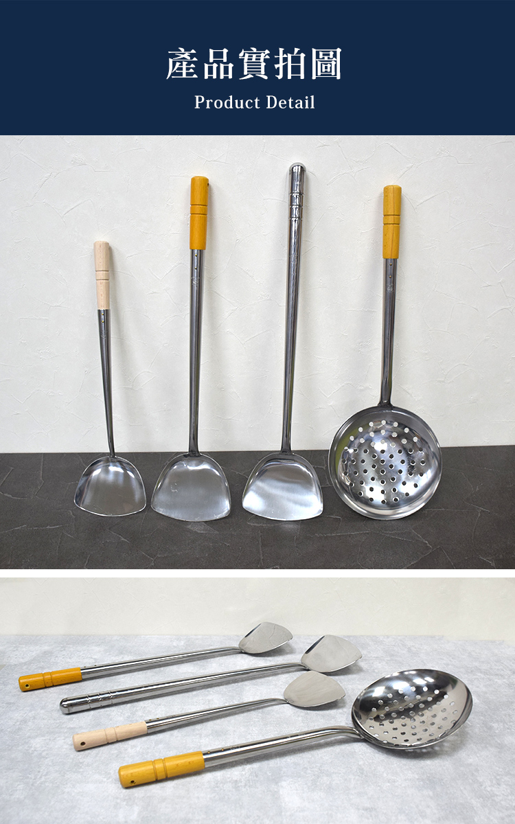 ●鍋鏟弧形處理不鏽鋼光滑打磨不易生鏽、更抗氧化,易洗易清潔薄斜鏟頭,更貼合鍋壁。圓弧鏟角,護鍋不傷鍋