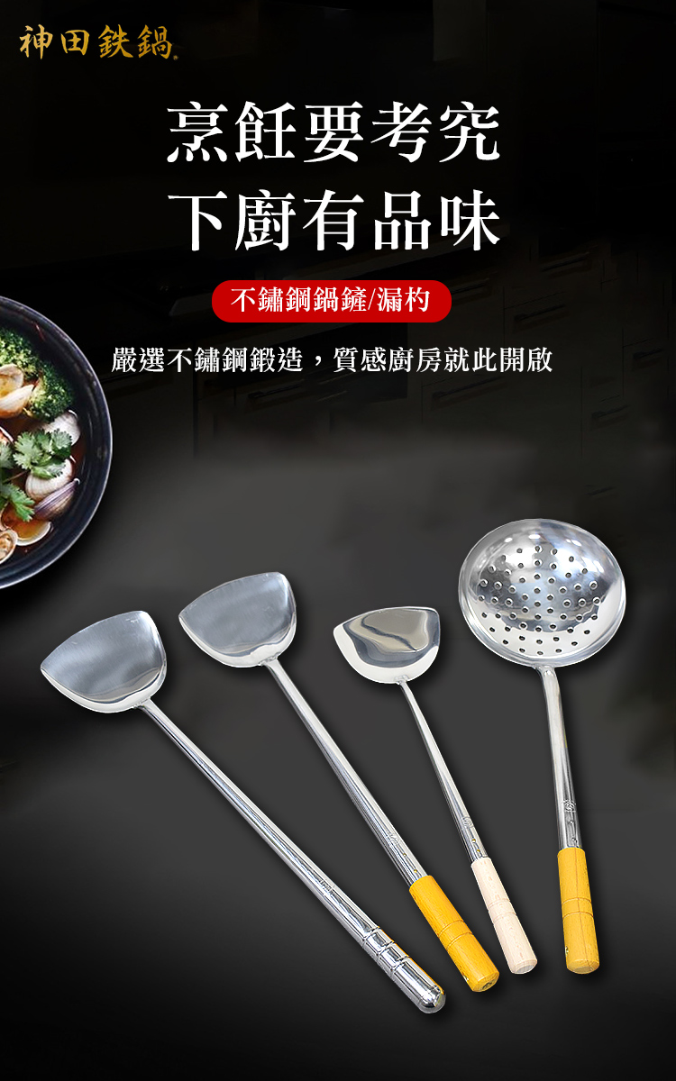 ●中華料理用具推薦●430食品級不鏽鋼●流線型弧形設計●日本境內版●廚房炒菜神器