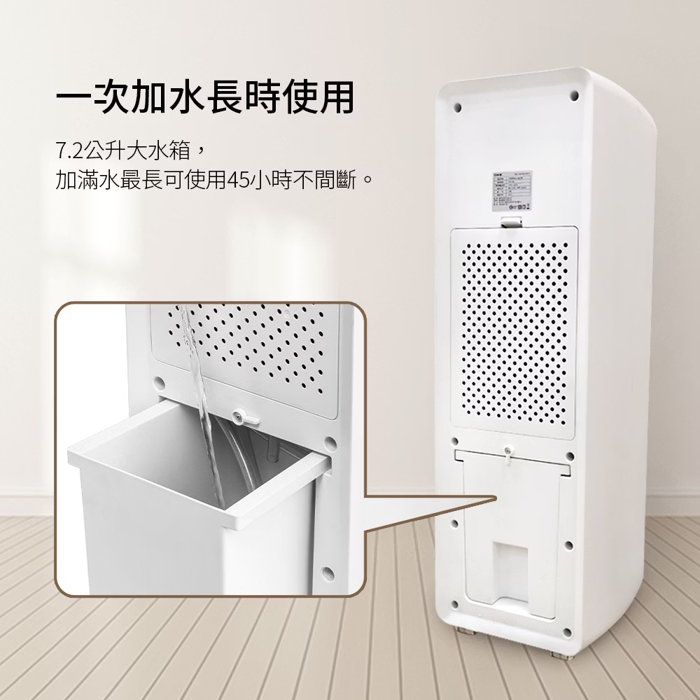 一次加水長時使用:7.2公升大水箱,加滿水最長可使用45小時不間斷。