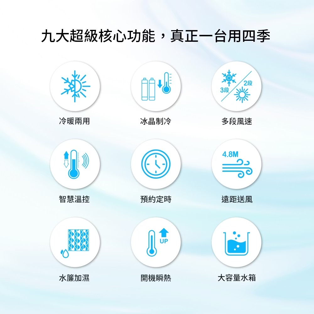 一機四季可用:夏季吹涼,冬季吹暖,秋季加濕,擺脫機器換季的收納困擾。