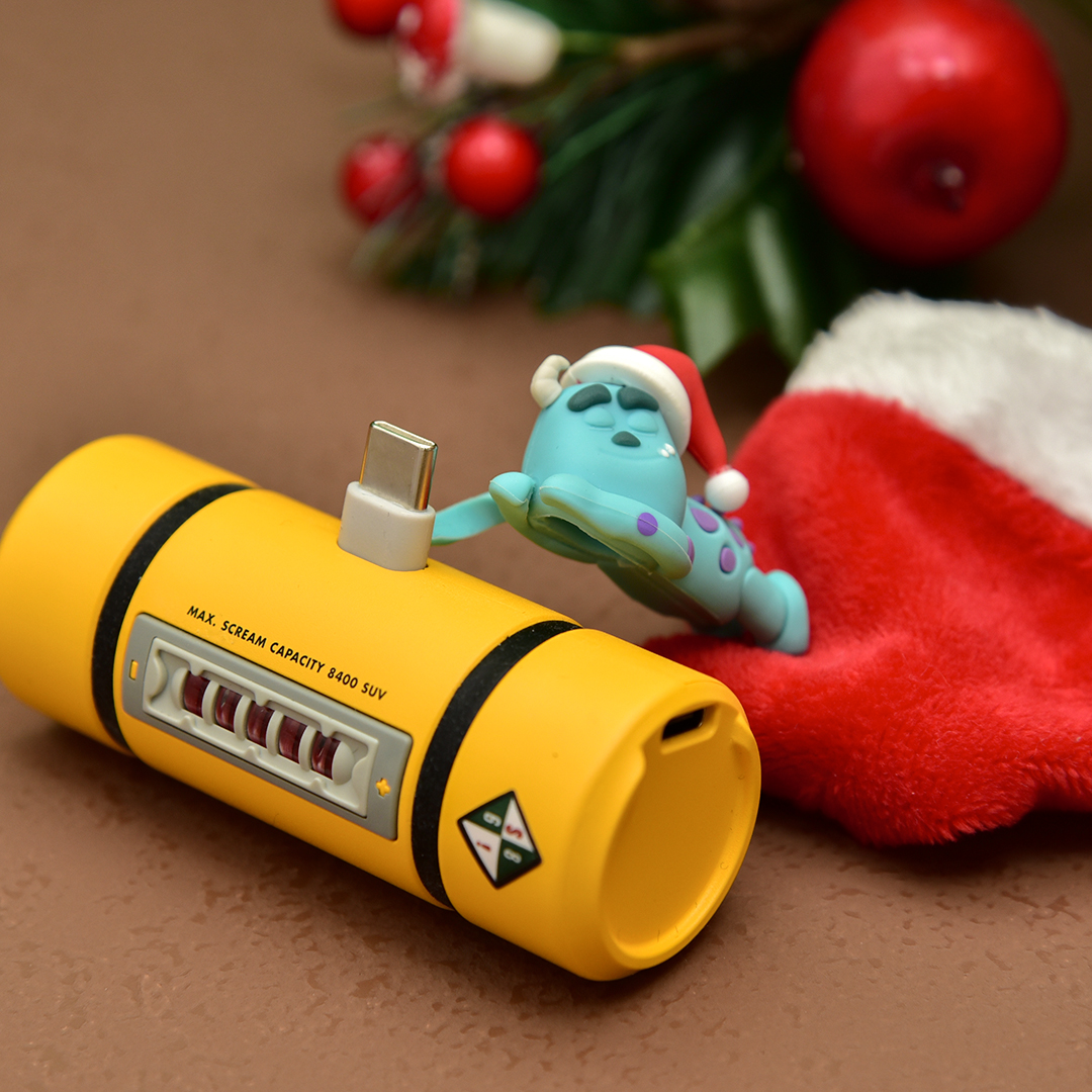 怪獸電力公司電力瓶造型設計台灣設計製造通過BSMI安全認證美國UL防火材料使用PD快充,滿足快速100%電力需求infoThink 毛怪聖誕版PD快充口袋行動電源 (Lightning/TypeC 任選一入)