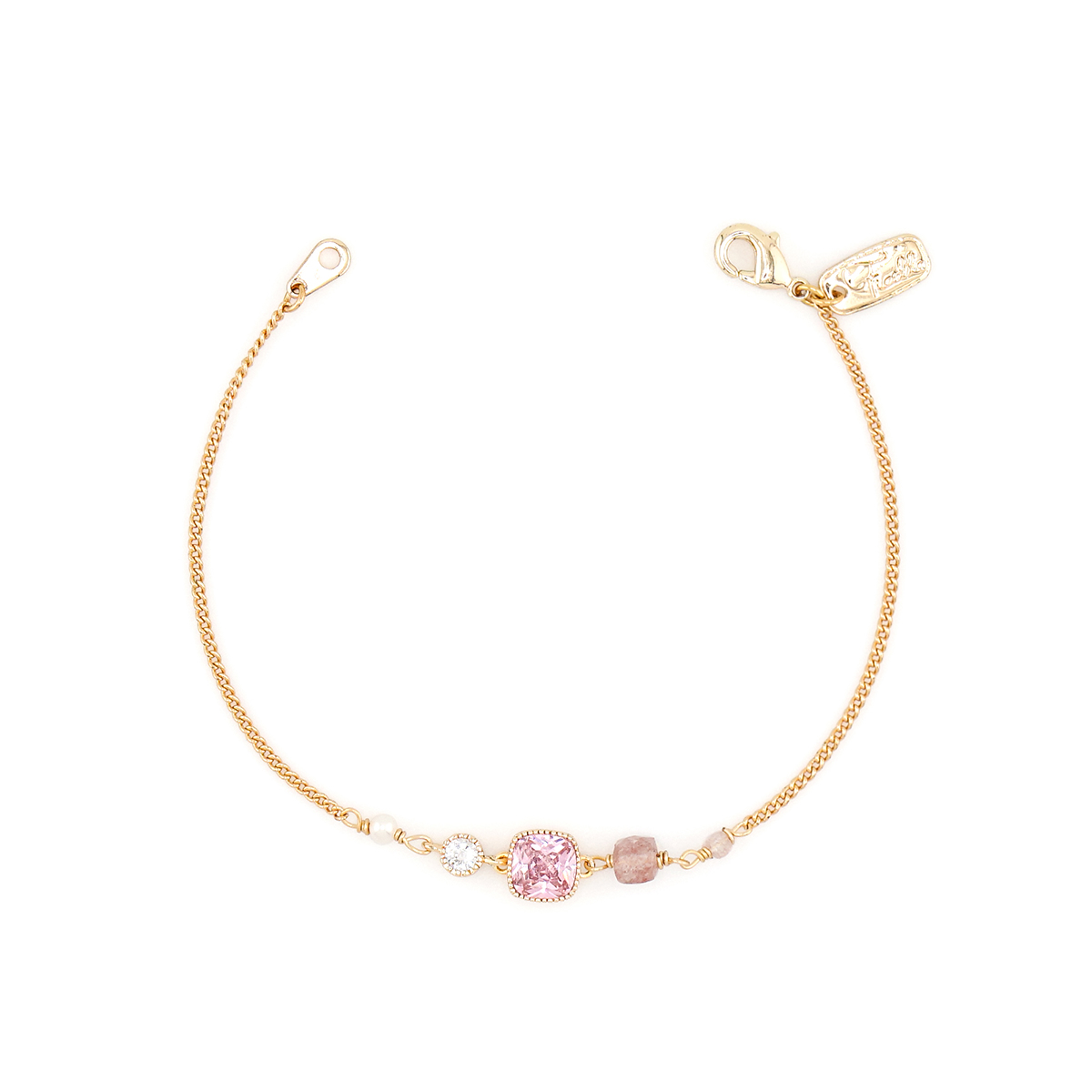 草莓晶、淡水珍珠、粉方鋯石、鋯石、黃銅鍍18K金