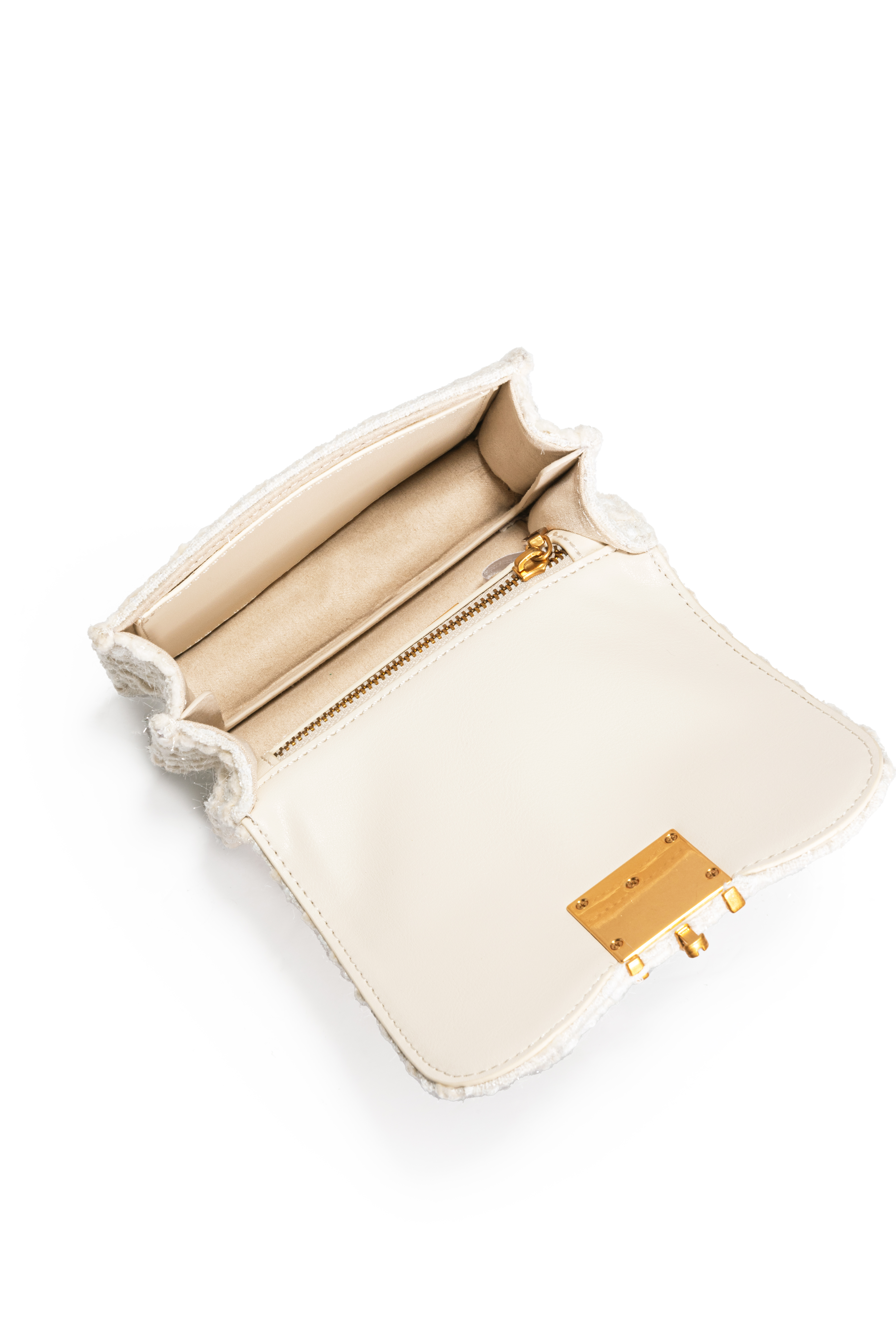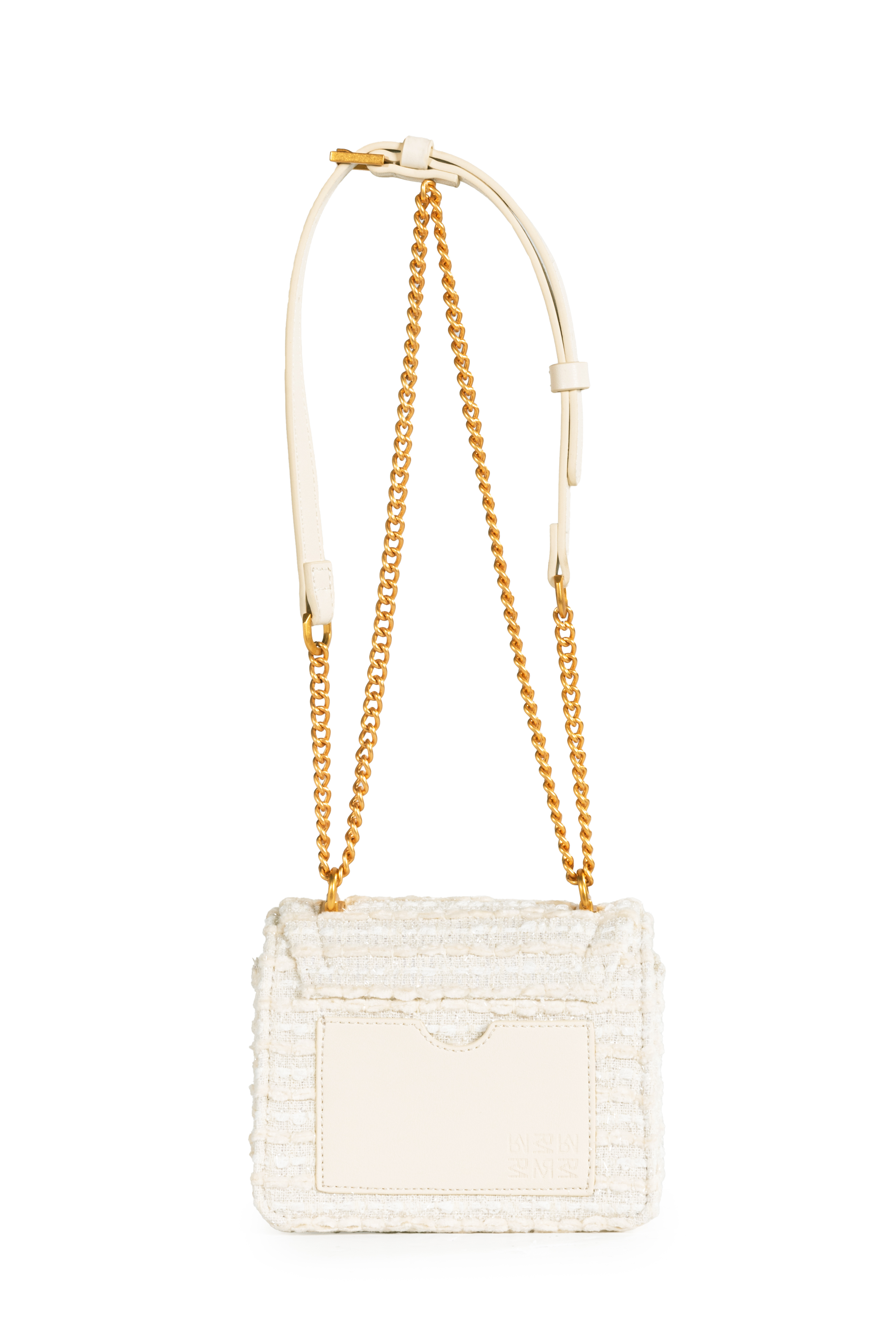 壓扣封口設計不可放置長夾、手機✖️精緻毛呢風小包設計,輕巧可愛波浪紋掀蓋造型、RM 質感五金 LOGO簡易收納空間,可置入少量隨身物品一拉式鍊條背帶設計,無法拆卸,可自由變化背法