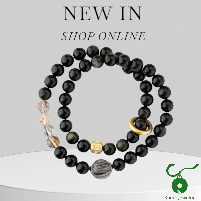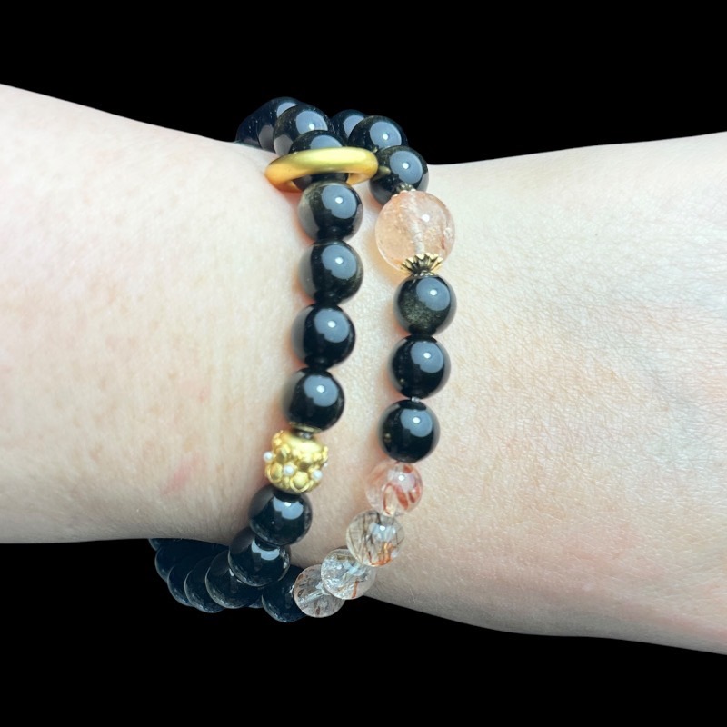 [快速出貨]【Kuder Jewelry】天然金曜石黑超七水晶繞二圈手串附珠寶鑑定書