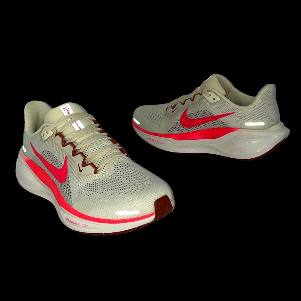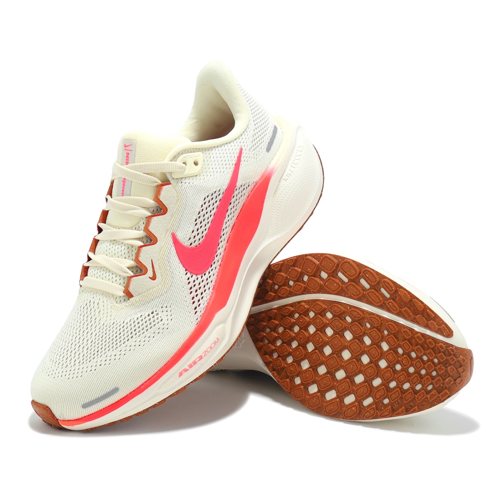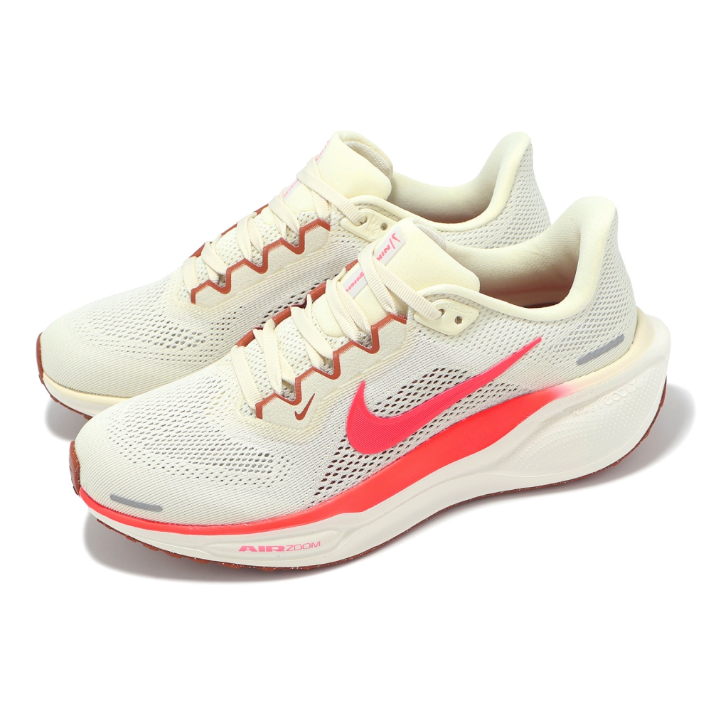 品牌: NIKE型號: FD2723-107品名: Wmns Air Zoom Pegasus 41版型: 版型正常* 中底搭載 Zoom Air 氣墊與 ReactX 泡棉材質,打造更好的回彈性與柔軟腳感,在雙足觸地時給予絕佳的緩震足感。* ReactX 泡棉專為降低碳足跡而打造,兼顧運動機能並達到永續保護地球。* 鞋面升級網布設計,大幅減輕鞋身重量更加強雙足的透氣機能性,使雙足時刻保持涼爽透氣不悶熱。* 大底增加凹槽設計,在步伐轉換時提供雙足更大的牽引力與靈活性。* 華夫格紋的設計提供良好的抓地力與耐磨效果,且鏤空的部分減輕鞋底的重量。