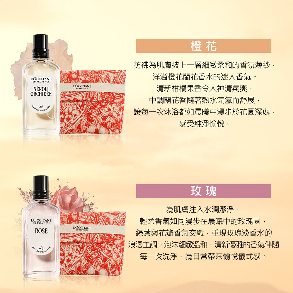 猶如一首由橙花與蘭花編織的晨光樂章,清新柑橘果香緩緩展開,宛如晨曦灑落肌膚,喚醒溫柔優雅的感官旅程。彷彿漫步普羅旺斯花園,沐浴陽光與花香的交織。展現自信與柔美並存的迷人韻味。