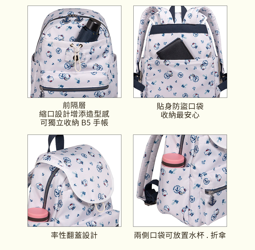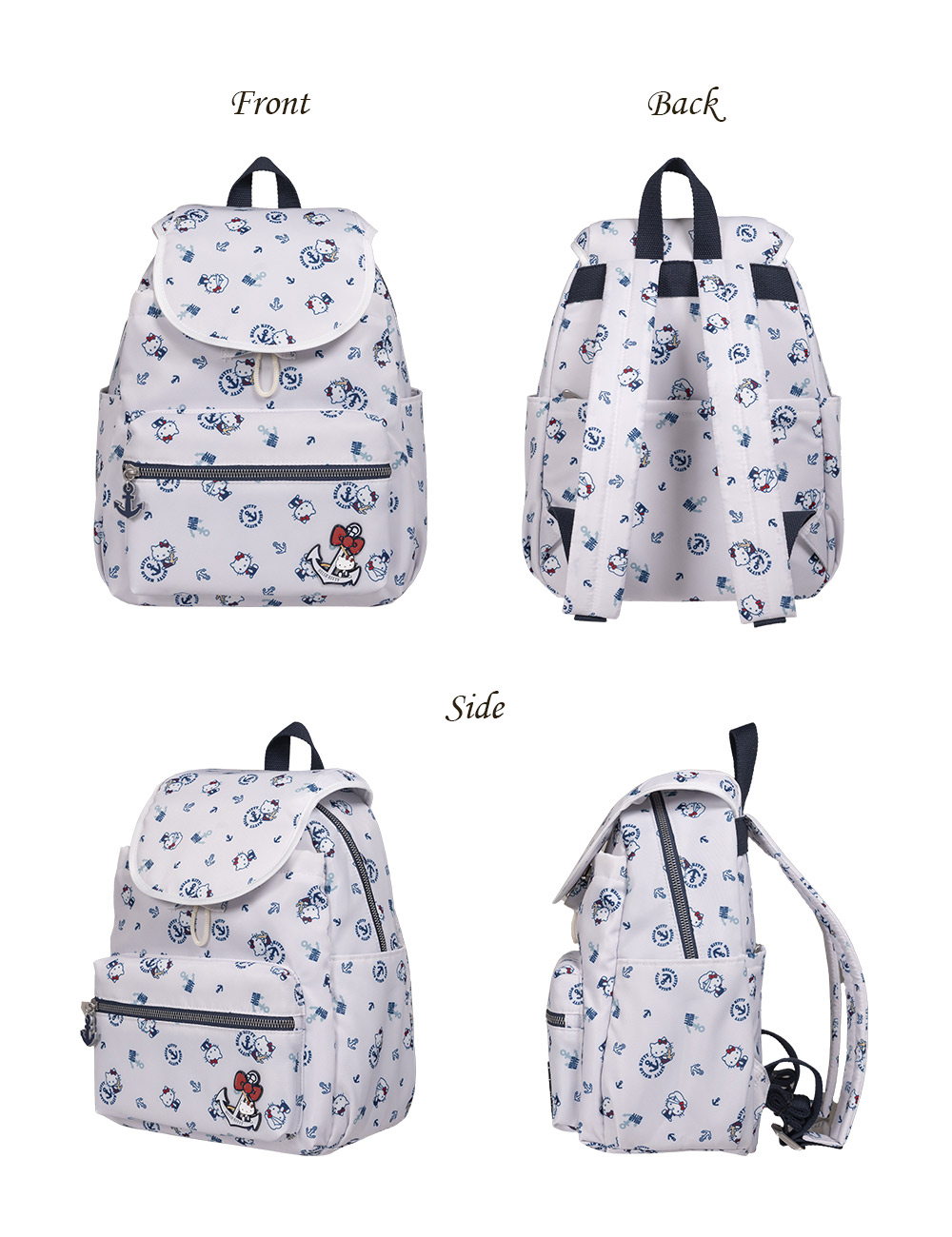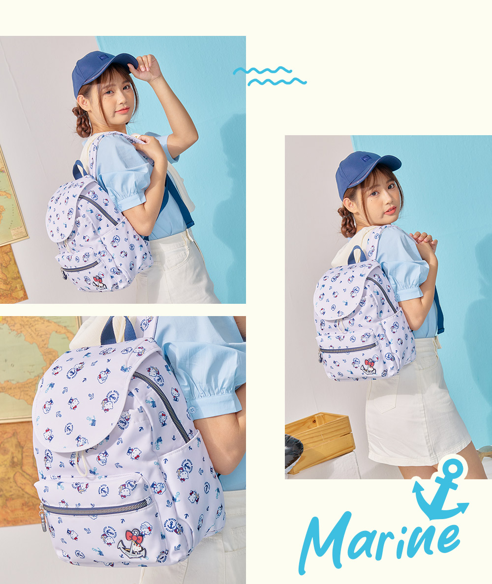 Hello Kitty 皇家航海系列,凱蒂化身超萌水手陪你一起環遊世界! 以經典海洋藍|優雅珍珠白結合海軍元素,打造各式休閒包款及旅遊配件,讓每一次出行都充滿活力!