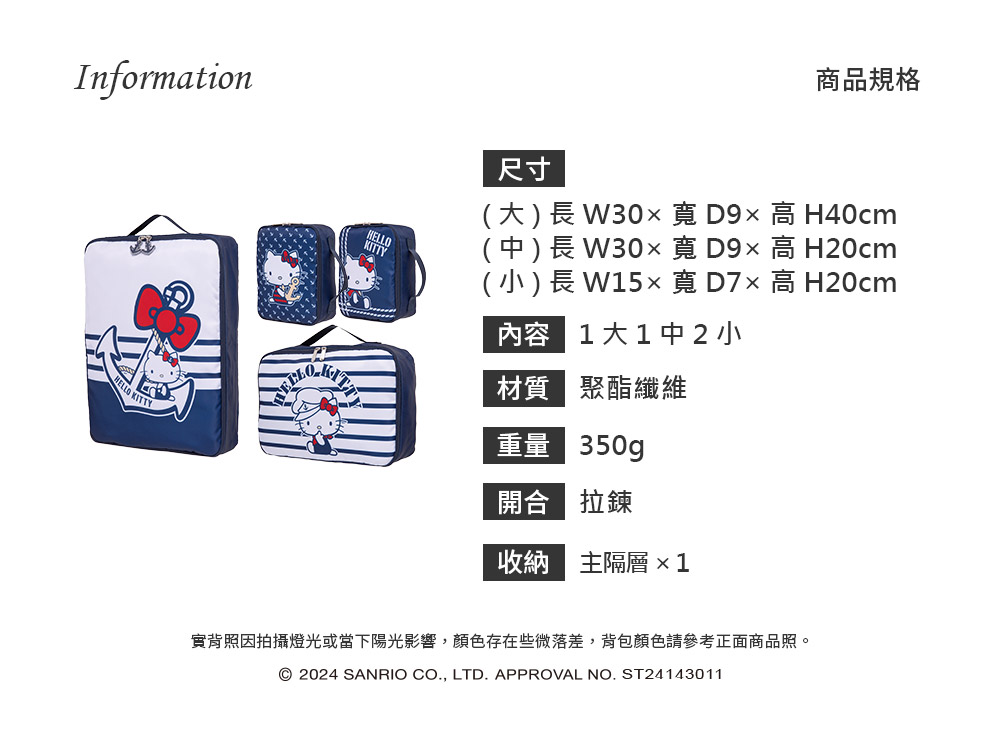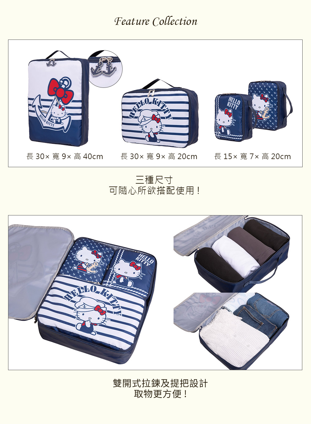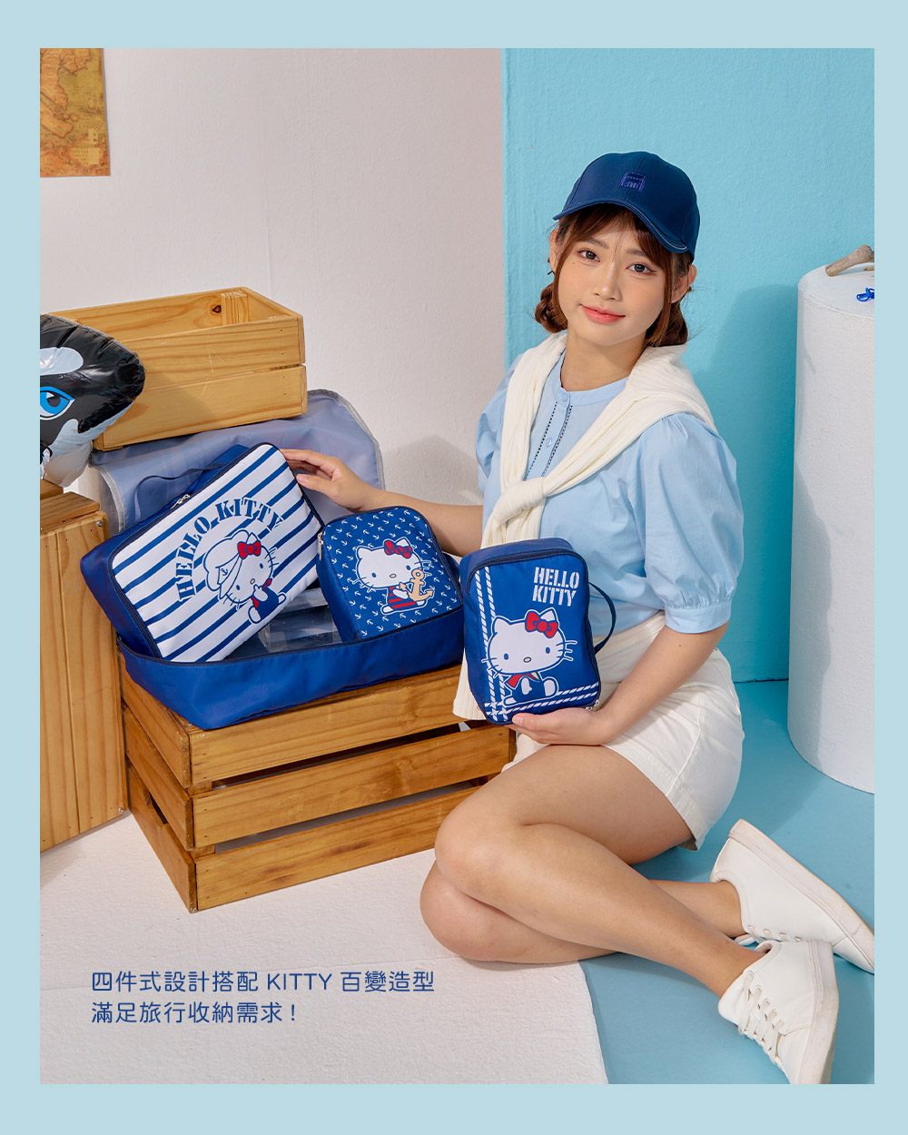 商品特色-Hello Kitty 化身超萌水手陪你一起環遊世界!-四件式設計,滿足旅行收納需求!