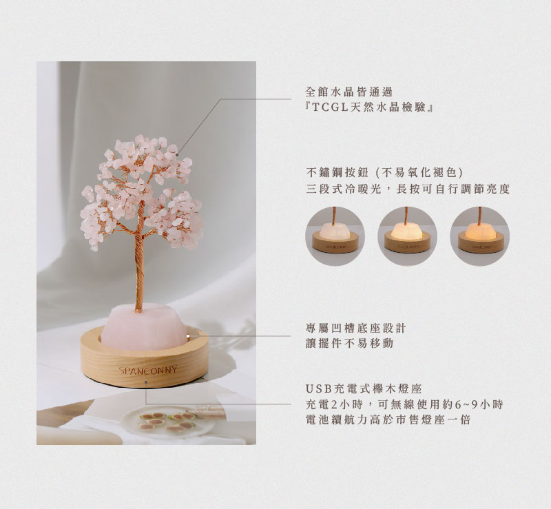 【組合內容】◦ 黃水晶樹◦ 櫸木燈座◦ USB充電線◦ 精緻禮盒包裝