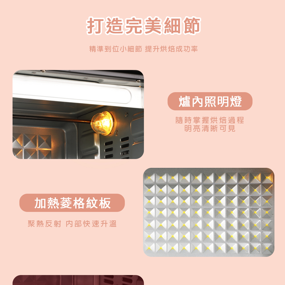 內壁升級菱格紋板,更均勻受熱