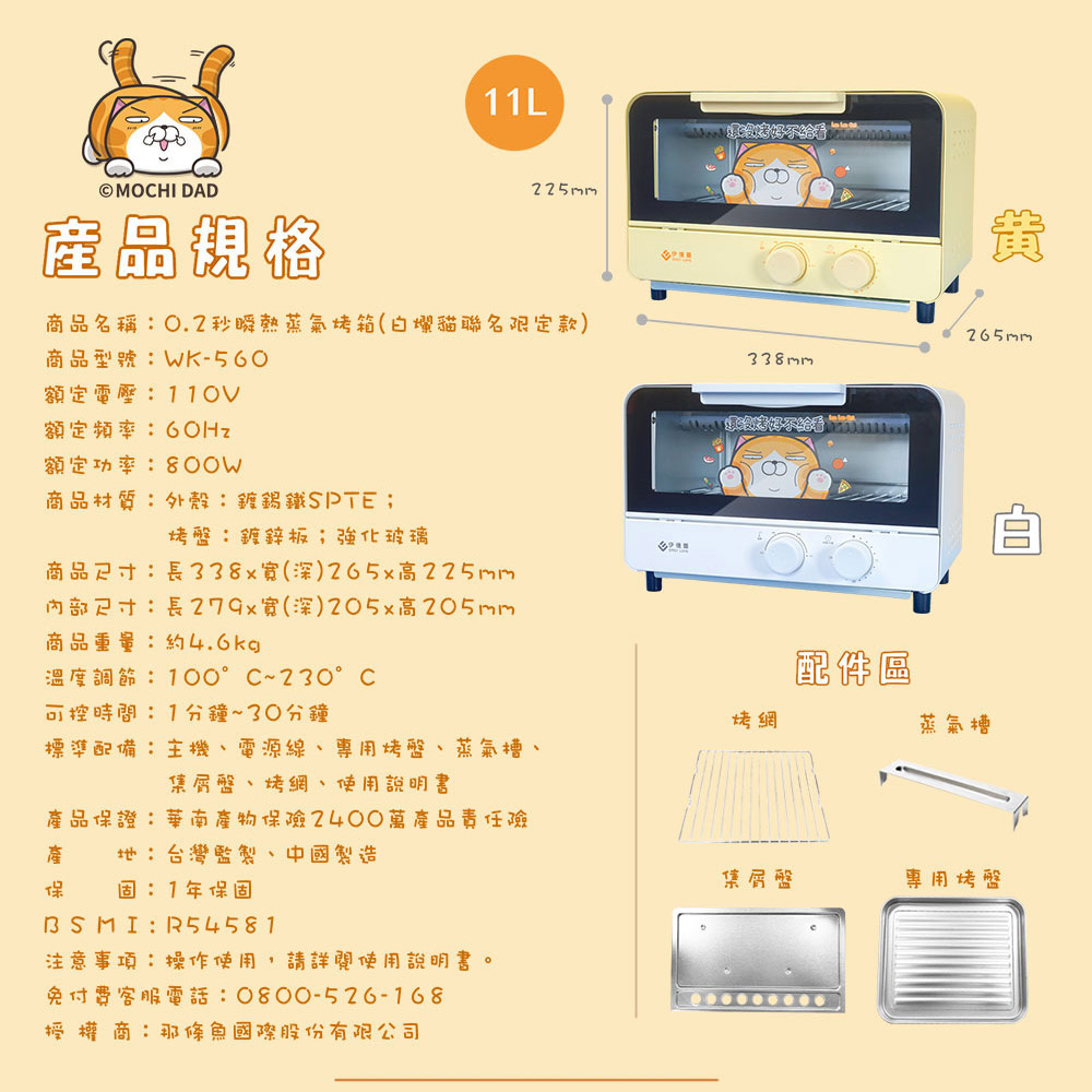 白爛貓聯名限定款【11L 0.2秒瞬熱蒸氣烤箱】 #還沒烤好不給看