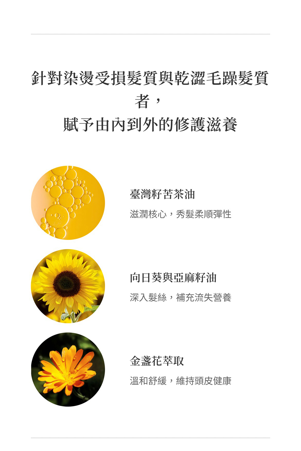 #乾燥稻草髮救星 #多重滋養修護• 染燙受損髮質適用• 賦予由內到外的修護滋養• 植萃香氣,滋潤髮絲也活化心靈