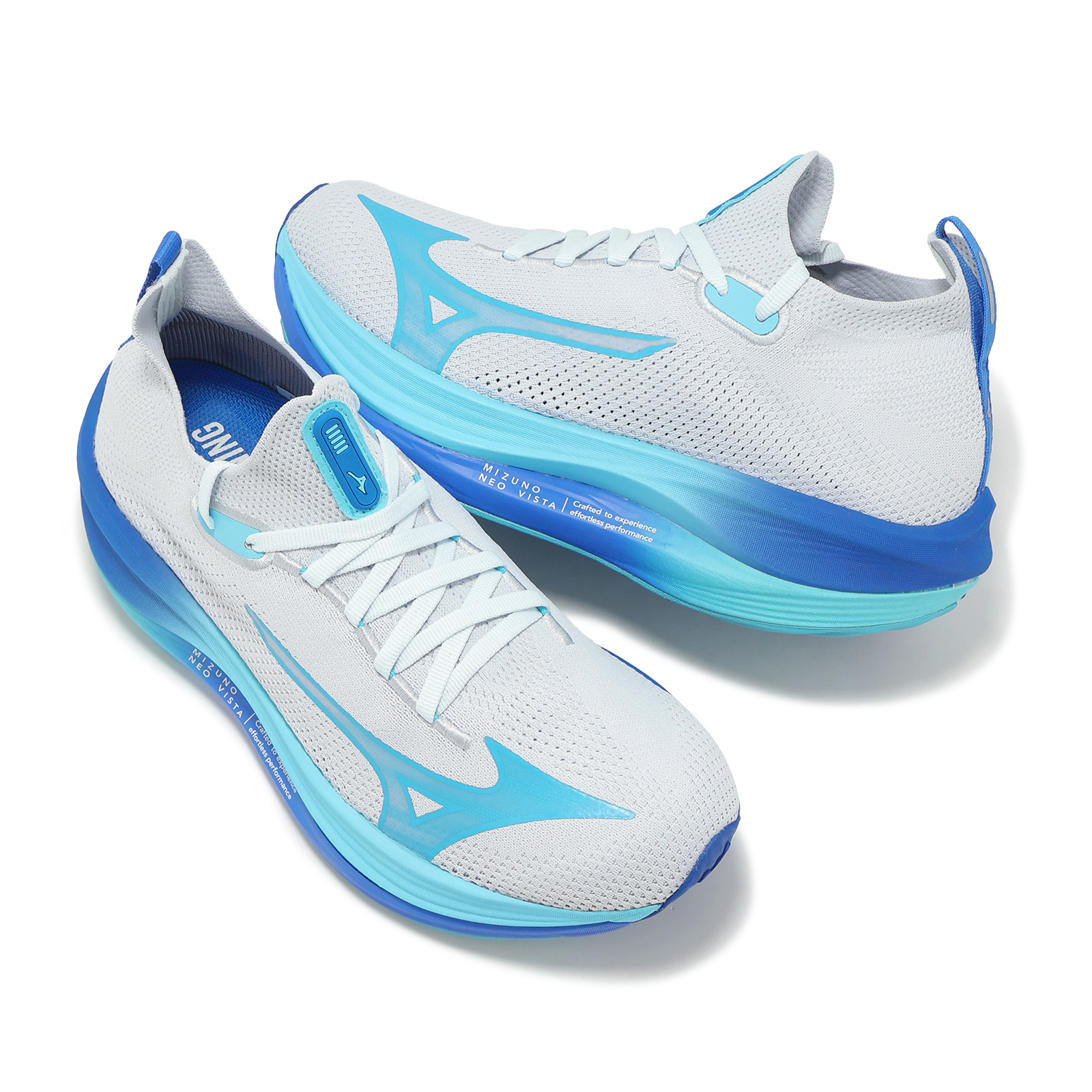 品牌: MIZUNO型號: J1GD2434-21品名: Neo Vista版型: 襪套式, 建議大半號* 鞋面使用針織網布搭載襪套式設計,提供雙足透氣舒適感,並給予輕量腳感與提高貼合度。