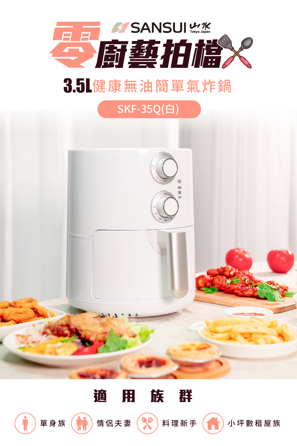 【SANSUI 山水】健康無油氣炸鍋 (白色) SKF-35Q | NearMe | 線上送禮平台『獨家支援 收禮者改選禮物』