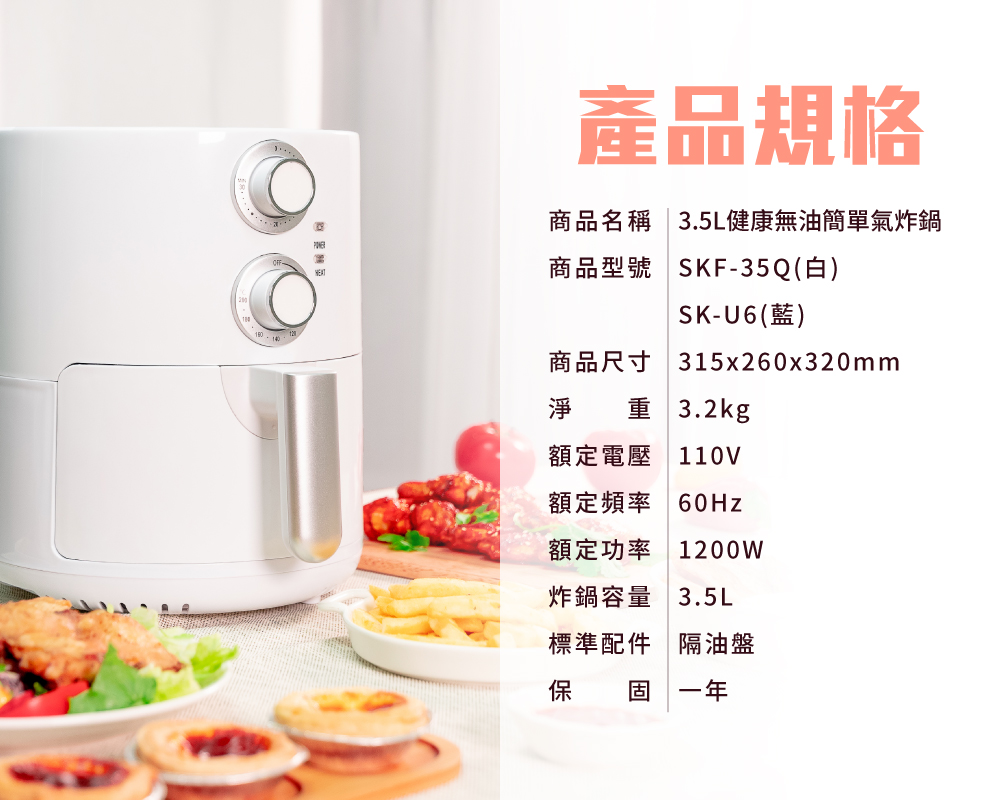 【SANSUI 山水】健康無油氣炸鍋 (白色) SKF-35Q