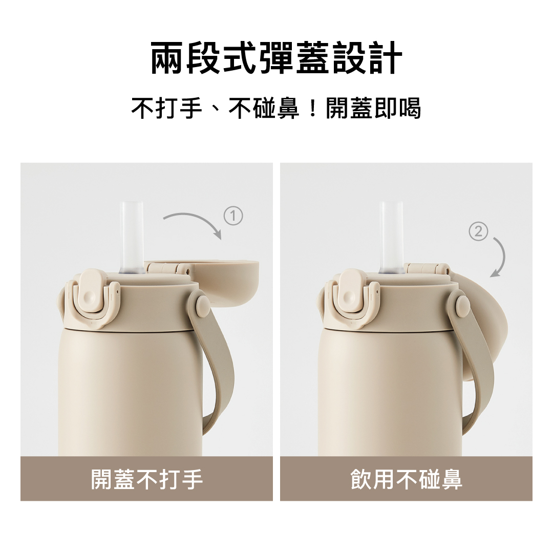 ●兩段式彈蓋設計,不打手、不碰鼻!開蓋即喝。