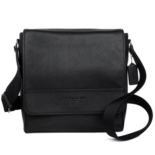 COACH男士斜背包,以簡約方型搭配便利隱藏式磁釦上翻蓋開合,內裡設置一拉鍊袋、外部背面一開口夾層,大小適中、百搭實用。