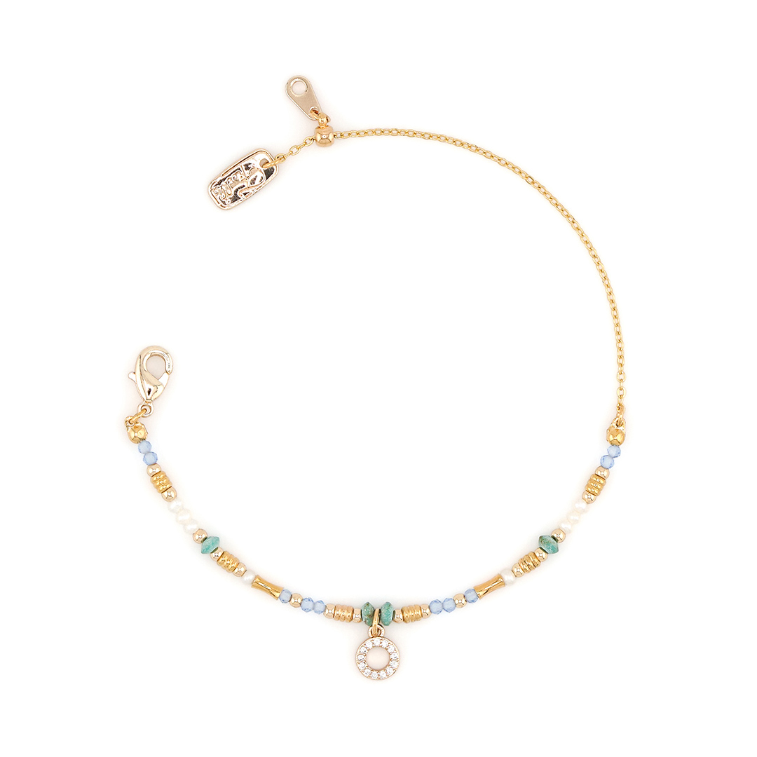– 商品材質 Product Materials –綠松石、淡水珍珠、托帕石、鋯石、黃銅鍍18K金– 寶石寓意 Gemstone Fortunes –綠松石 Turquoise:為成功幸運之石,富含正面能量,有助於消除負面情緒。托帕石 Topaz:又稱黃晶,為友誼之石,象徵和平友愛,使人真誠與執著。
