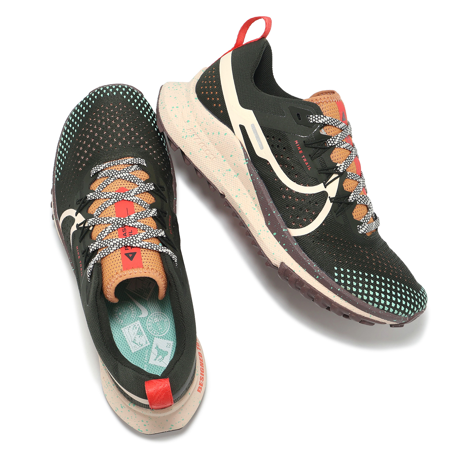 品牌: NIKE型號: DJ6159-300品名: Wmns React Pegasus Trail 4版型: 版型偏小, 建議大半號* 全新的 Pegasus Trail 4 ,以環保材質打造,比起前代更具穩定的支撐效果與彈力足感。