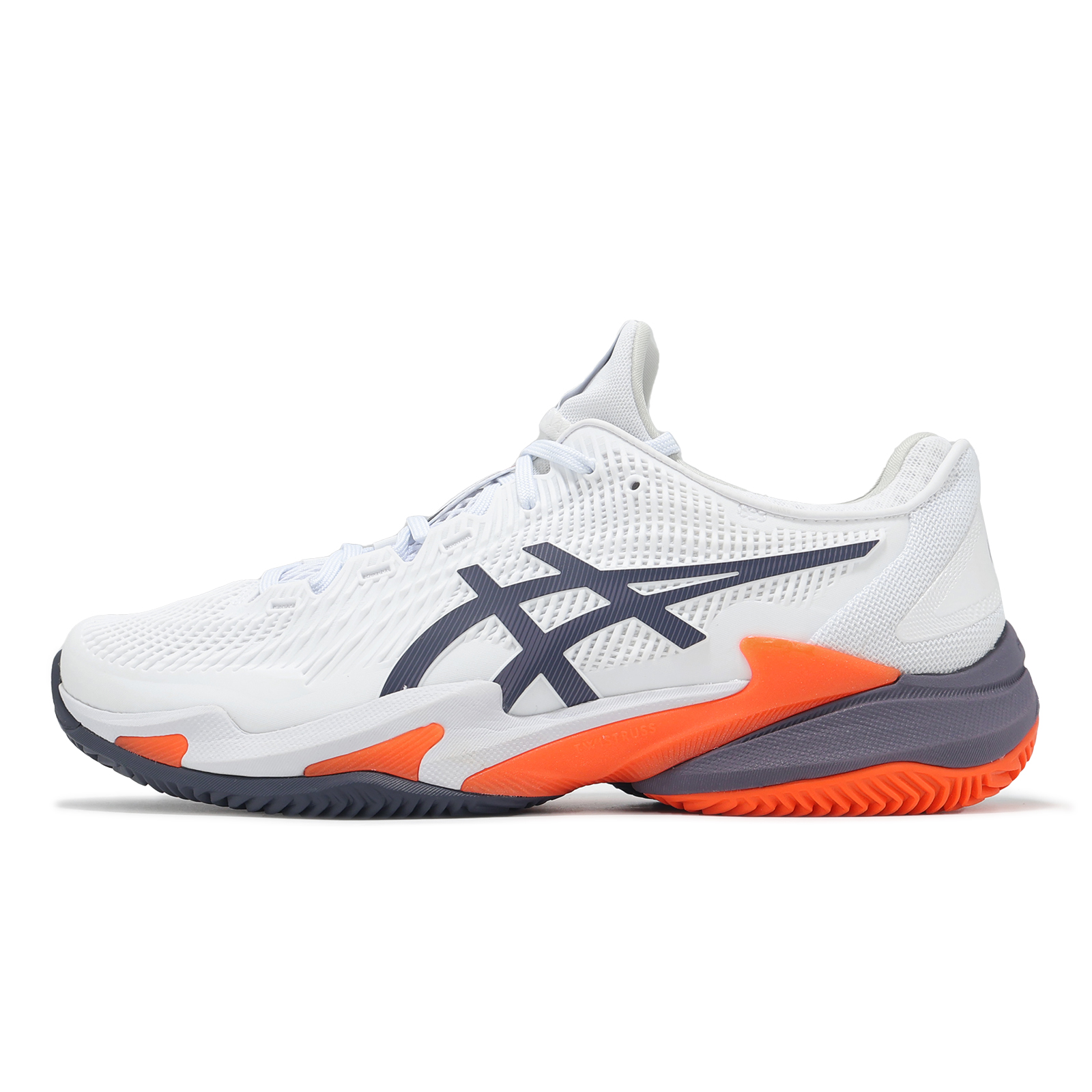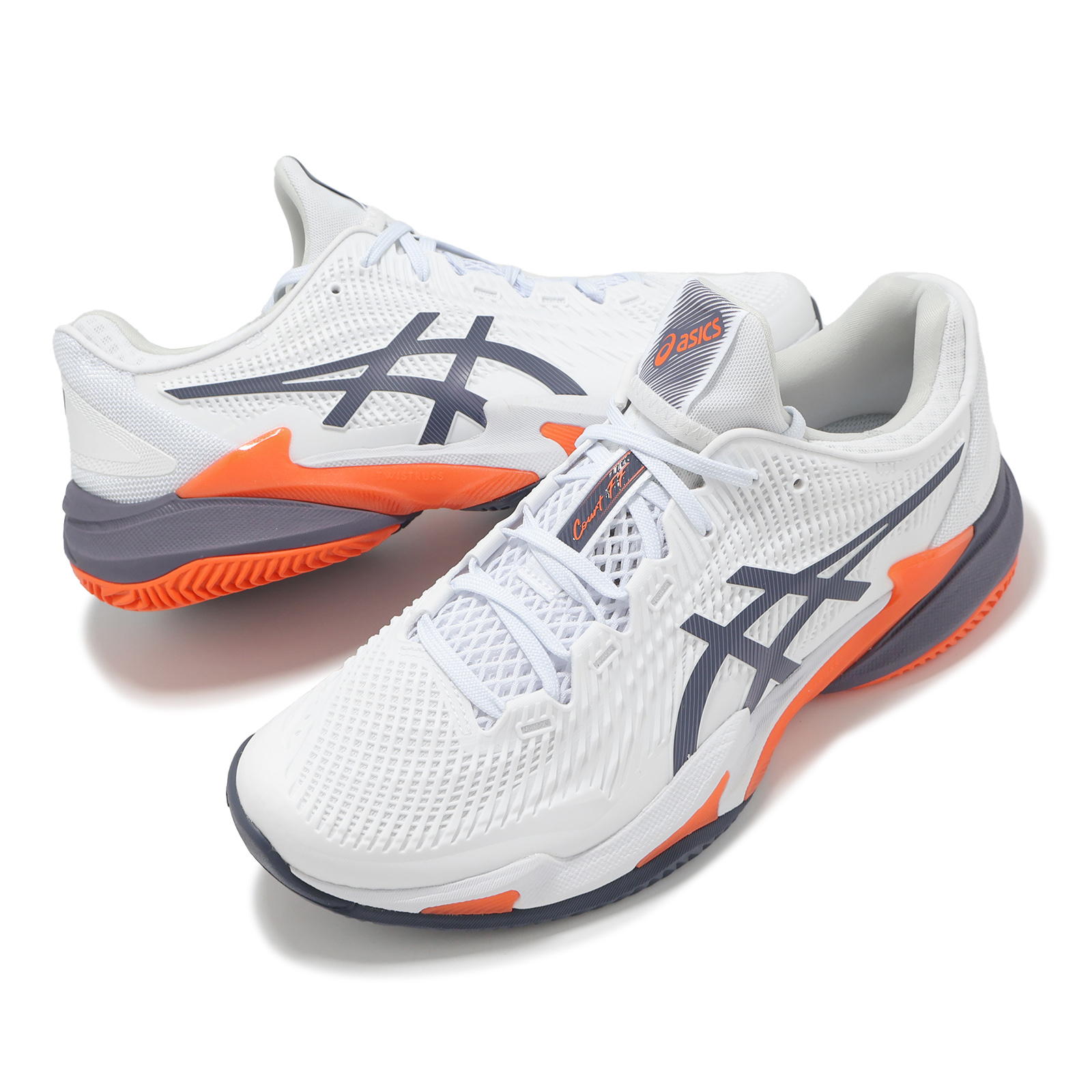 品牌: ASICS型號: 1041A371104品名: Court FF 3 Clay版型: 腳寬者建議大半號* COURT FF 3 腳步穩定性及靈活性兼顧,創造更有力的揮拍和更快的恢復姿勢。