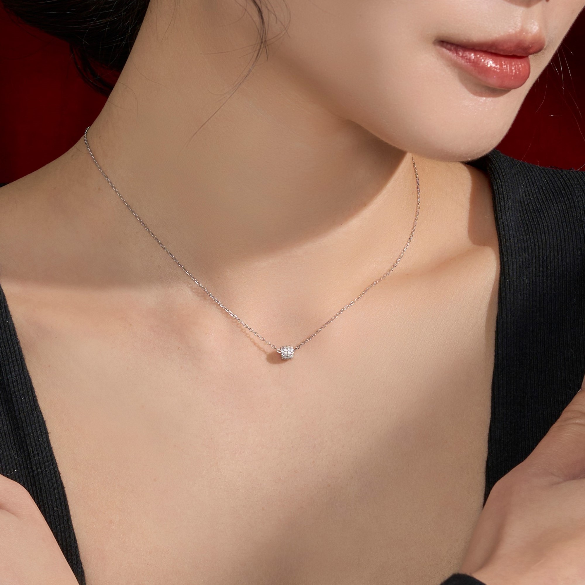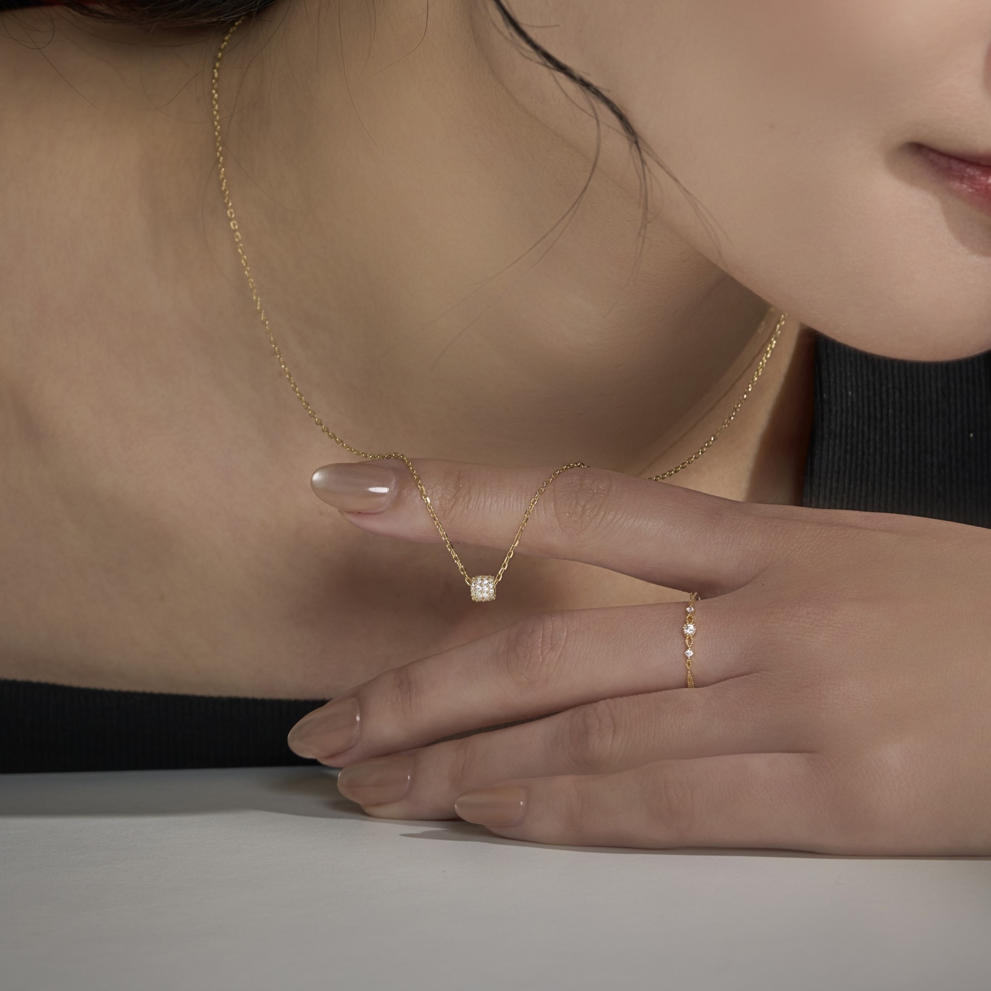 以類珠寶級的鑲嵌,展現 Isha 作工的精細度:像零度以下由水蒸氣凝結產生的冰晶,讓項鍊的每個角度都閃耀