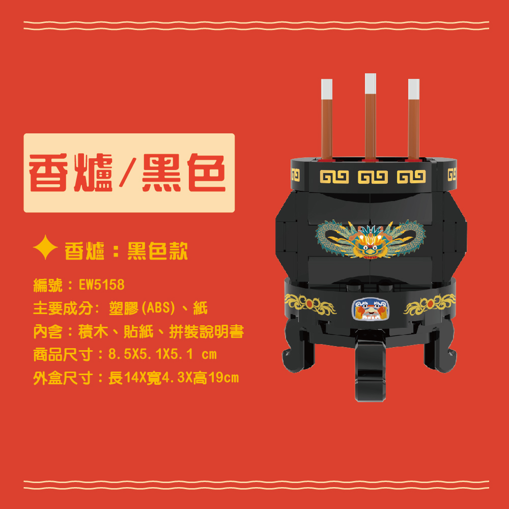 商品編號:EW-5225適合年齡:6歲以上品名:虎哩發-金虎爺 金蛋 黑香爐 積木禮盒組禮盒外盒尺寸:19.5x14.5x25.5CM