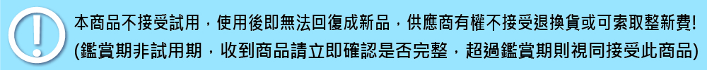 ※不可試用,一旦使用即無法回復為新品販售,將視折損情形酌收費用。